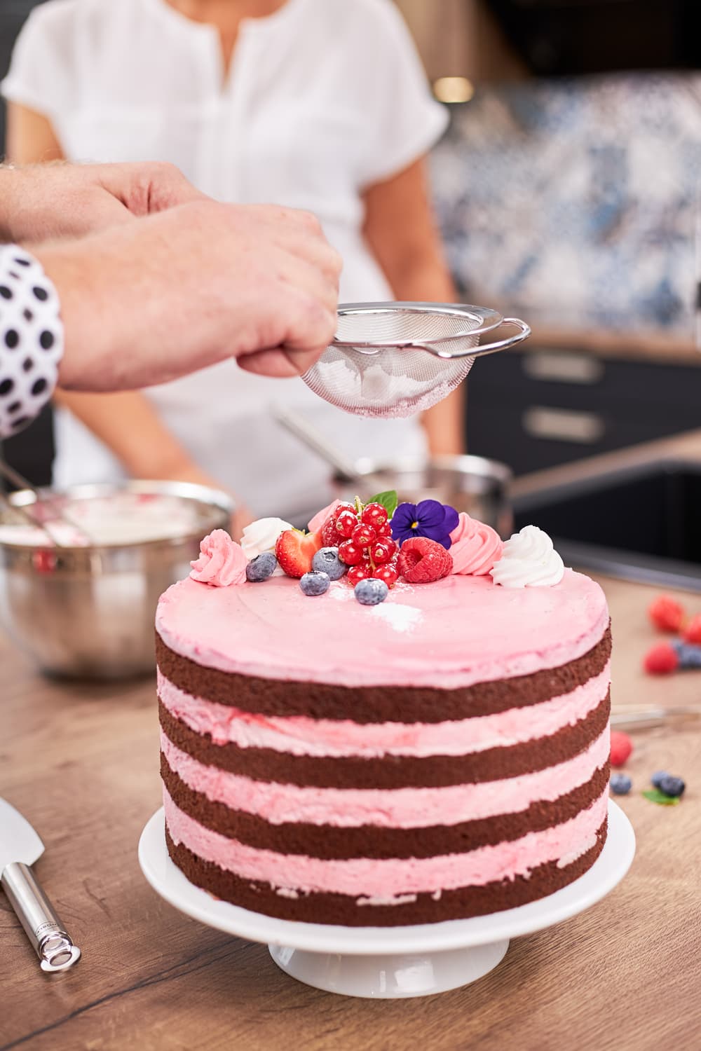 Durch das feine Maschengewebe zum Abgießen, Feinpassieren und Blanchieren geeignet. Aber auch zum Bestäuben mit Puderzucker und Sieben von Mehl. Mit Rundgriff und Aufhängeöse.