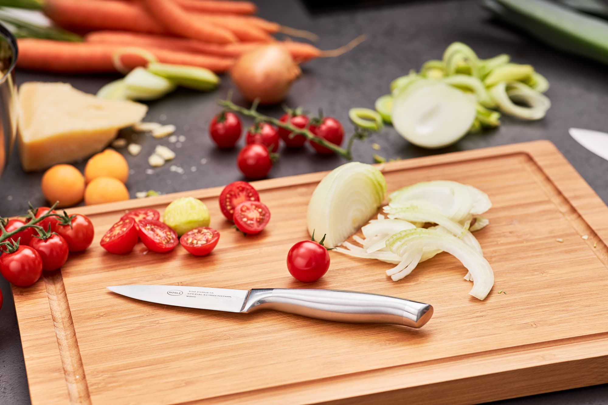 Unverzichtbar und vielseitig einsetzbar das Basic Line Schneidbrett aus Bambus. Mit seinen Gummifüßen steht es sicher beim Schneiden und Anrichten und kann gleichzeitig zum Servieren verwendet werden.