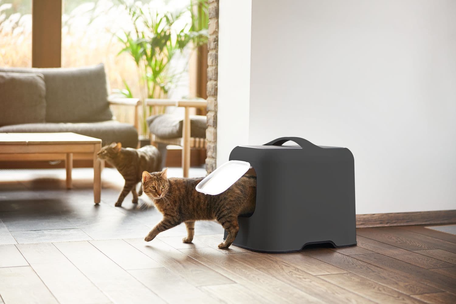 • Durch einen Magneten lässt sich die Tür schnell schliessen und bleibt in geschlossener Position - Gerüche bleiben in der Katzentoilette