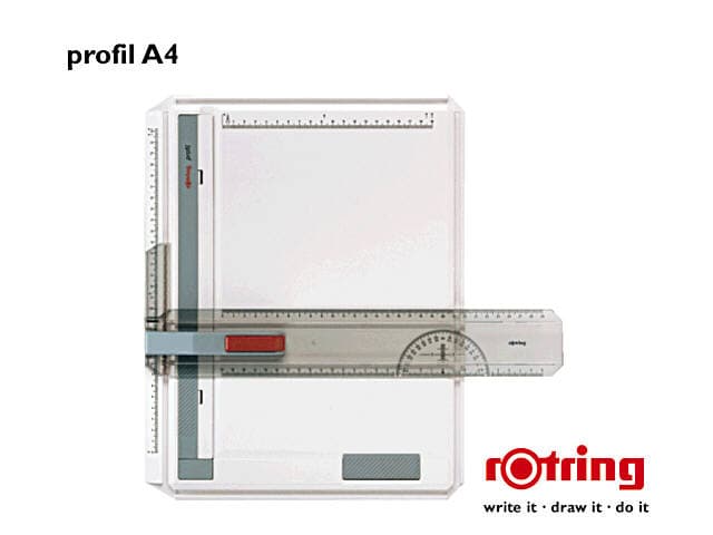 Zeichenplatte Profil. Material und Farbe: schlagfester Kunststoff, hellgrau. Freie Nullpunktwahl ja/nein, Parallel-zeichenschiene mit STOP-and -GO-Mechanik. Zur Verwendung der Schrägstellerfüße (Zubehör) geeignet. Für Format: A4.