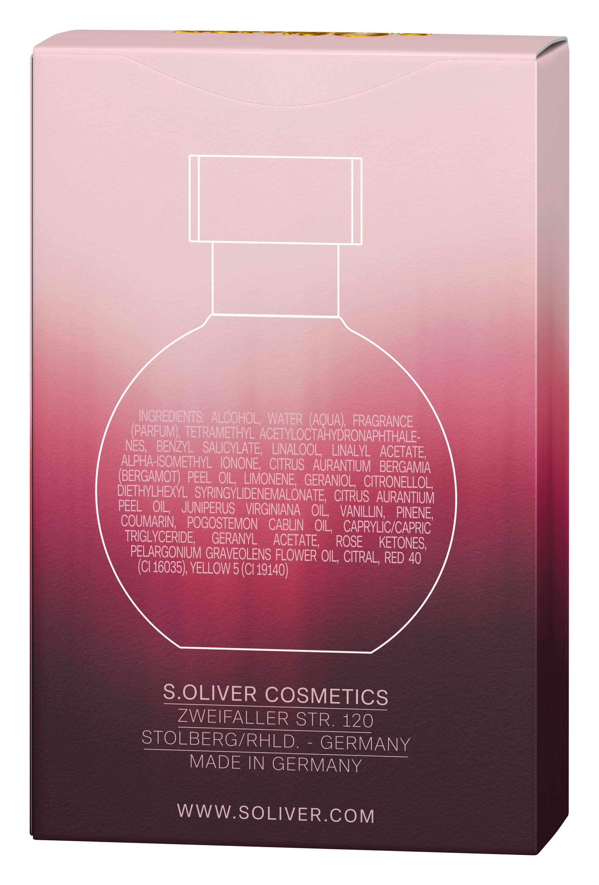 Ein harmonisches Zusammenspiel aus Bergamotte, Mandarine und Birne eröffnet den Duft. In der Herznote vereinen sich Rose, Jasmin und Maiglöckchen zu einem floralen Miteinander. Moschus, Zedernholz und Kaschmirholz bilden eine tiefgründige Basis.s.Oliver United ist vegan und frei von tierischen Inhaltsstoffen, sowie Stoffen tierischen Ursprungs.UNITED ermutigt dazu, aus dem Alltag auszubrechen und gemeinsam Großartiges zu erreichen. Es sind nicht nur die großen Ereignisse, die unser Leben besonders machen – es sind die kleinen, geteilten Augenblicke, die in Erinnerung bleiben.