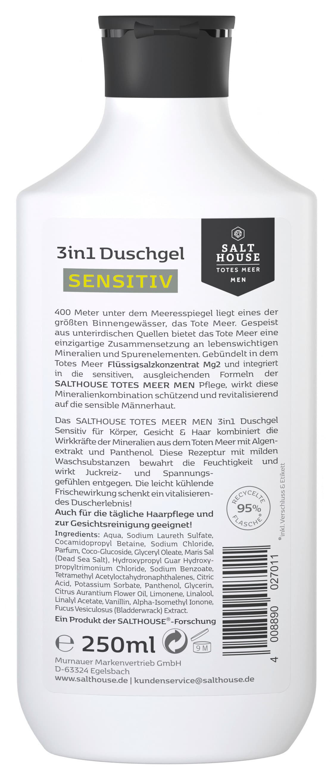 Das SALTHOUSE Totes Meer Men 3in1 Duschgel Sensitiv ist eine vielseitige Reinigung für Körper, Gesicht und Haar. Die Formulierung mit Mineralien aus dem Toten Meer ist speziell auf die Bedürfnisse von Männern abgestimmt.