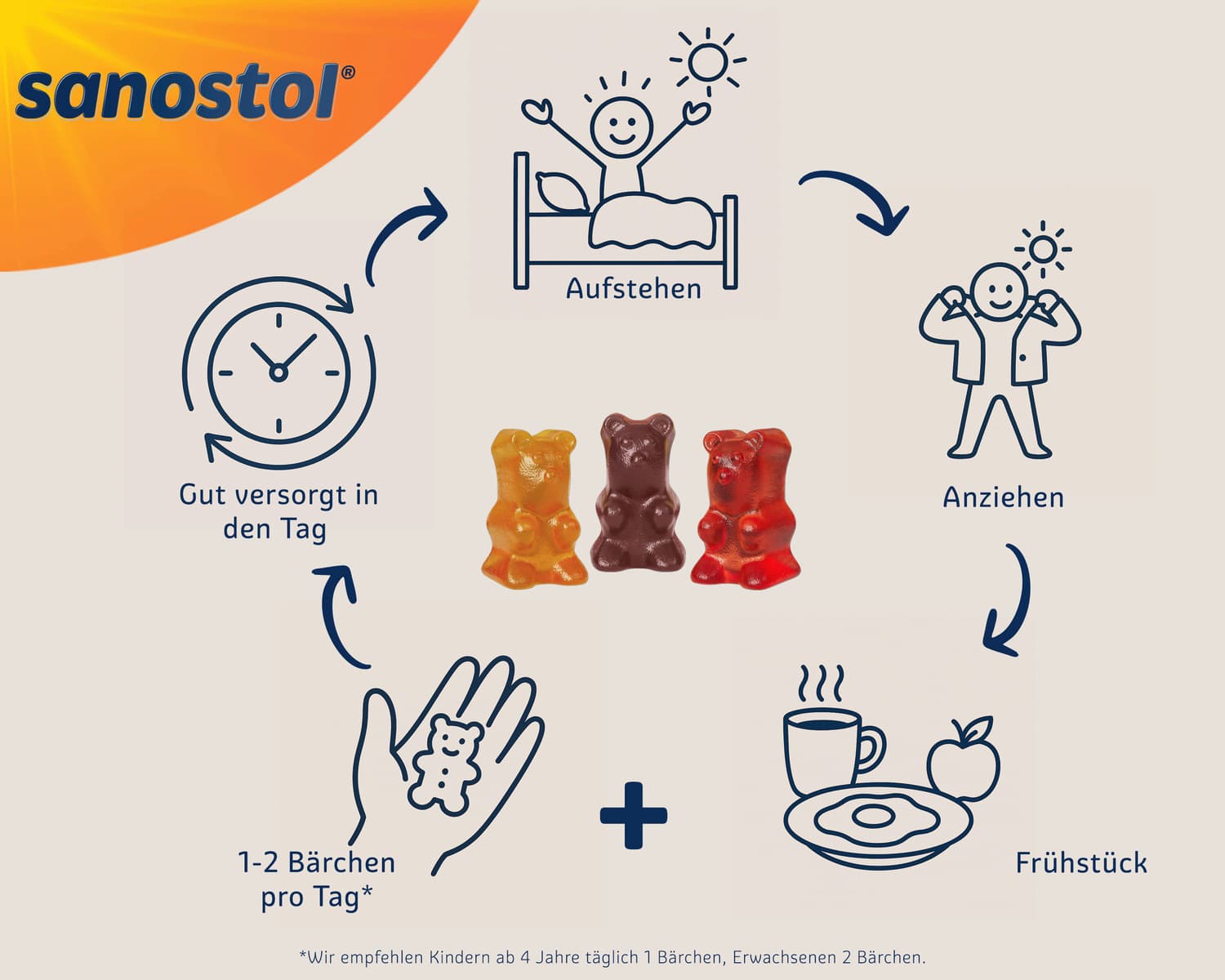 Diese Multi-Vitamin Bärchen aus dem Hause Sanostol enthalten die Vitamine C und D. Dank dieser vitaminreichen Rezeptur tragen die kleinen Bärchen zu einer normalen Funktion des Immunsystems bei.