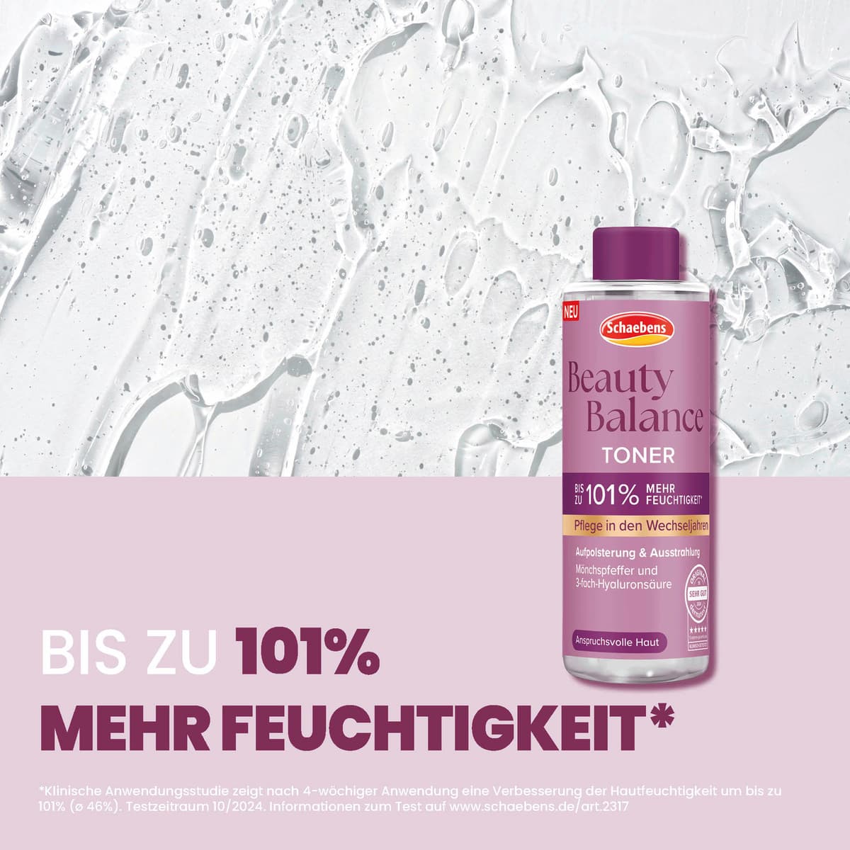 Bestätigte Wirksamkeit *Klinische Anwendungsstudie zeigt nach 4-wöchiger Anwendung eine Verbesserung der Hautfeuchtigkeit um bis zu 101% (ø 46%). Testzeitraum 10/2024. Informationen zum Test auf www.schaebens.de/art.2317