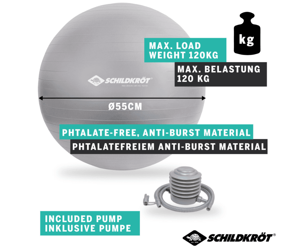 Der Gymnastikball von Schildkröt-Fitness ist ein vielseitiges Trainingsgerät für Gymnastikübungen und Reha-Anwendungen. Dank des mitgelieferten Zubehörs ist er sofort einsatzbereit.