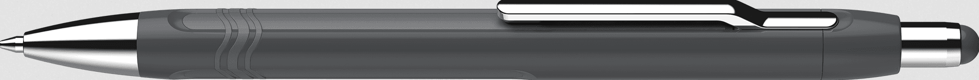 Kugelschreiber, der klassisches Design mit modernen Stilelementen vereint. Für ein unverwechselbares Erscheinungsbild sorgen der teilweise versenkte Metallclip, sowie die farblich abgestimmten gummierten Streifen. Eine im Griffbereich als Interpretation des Firmenlogos umlaufende Dreifachlinie aus Weichkunststoff dient zusätzlich der Rutschfestigkeit. Auswechselbare Großraummine Slider 755 extrabreit (XB) mit Viscoglide®-Technologie für außergewöhnlich leichtes und gleitendes Schreiben. Gehäusefarbe graphite, Schreibfarbe blau, dokumentenecht nach ISO 12757-2. Die verschleißfeste Edelstahlspitze garantiert, dass der große Pastenvorrat vollständig und schmierfrei genutzt werden kann. Der Epsilon hat einen federnden Metallclip und ist durch das clevere Plug+Play-System mit verschiedenen Minenformaten nachfüllbar.