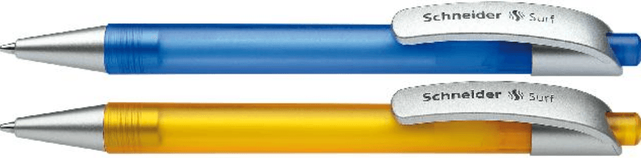 Voluminöser Kugelschreiber in Transparent-Farbtönen mit großem Clip. Blisterkarte mit 2 Stück, Gehäusefarben sortiert, Schreibfarbe jeweils blau, Strichstärke M. Dokumentenecht nach ISO 12757-2. Der Kugelschreiber ist mit verschiedenen Minen nach dem Schneider Plug+Play-System nachfüllbar.