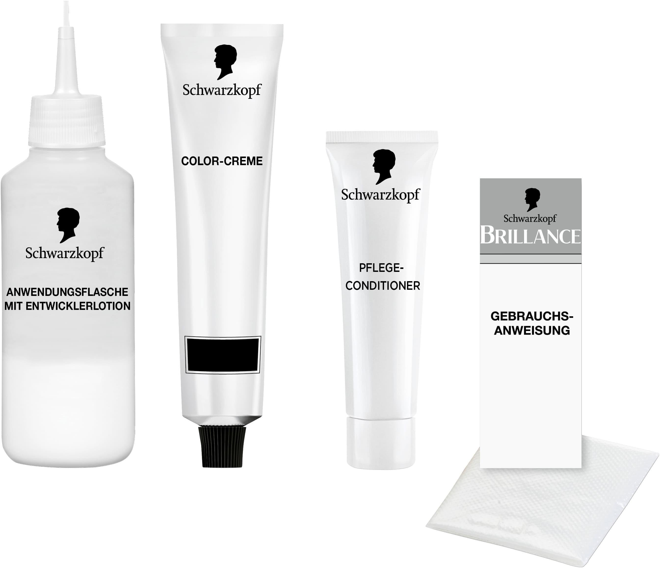 BRILLANCE Intensiv-Color-Creme – Ein Haarfarben-Statement mit Diamant-Glanz.Dank der SCHWARZKOPF Farbexpertise bietet BRILLANCE einzigartig intensive Haarfarben in professioneller Qualität für zu Hause. Die hochleistungsfähige Formel sorgt für langanhaltende Farbintensität bis zu 10 Wochen und für bis zu 100% Grauabdeckung. Das Haar wird mit der Diamant-Glanz-Nachbehandlung gepflegt - Für atemberaubenden Glanz.Reichhaltige Pflege mit HaptIQ System:Die besondere Conditioner-Formel mit HaptIQ System pflegt Ihr Haar wie folgt:1. Neue Mikroverbindungen werden im Haar gebildet.2. Die Haare werden nach dem Colorieren mit einer Schutzschicht umhüllt.3. Die Haarfasern werden von innen gestarkt – für bis zu 90 % weniger Haarbruch* und für langanhaltende Farbergebnisse.HaptIQ - Wunderschöne Haarergebnisse, die Sie fühlen können.Die Produktvorteile im Detail:Bis zu 10 Wochen FarbintensitätIntensive Leuchtkraft&GlanzPerfekte GrauabdeckungPflege-Condtioner mit HaptIQ-SystemBis zu 90% weniger Haarbruch*Anwendung: Die fertige Colorationsmischung Strähne für Strähne auf dem gesamten Haar verteilen. Die Mischung entsprechend der Angabe in der Gebrauchsanweisung einwirken lassen. Bei längerem oder dickerem Haar bitte für eine erste Anwendung 2 Packungen BRILLANCE verwenden.Darf nicht in die Hände von Kindern gelangen. Entwickler von Hitze fernhalten. Keine nicht gebrauchte Mischung aufbewahren.* Instrumenteller Test mit und ohne Conditioner.