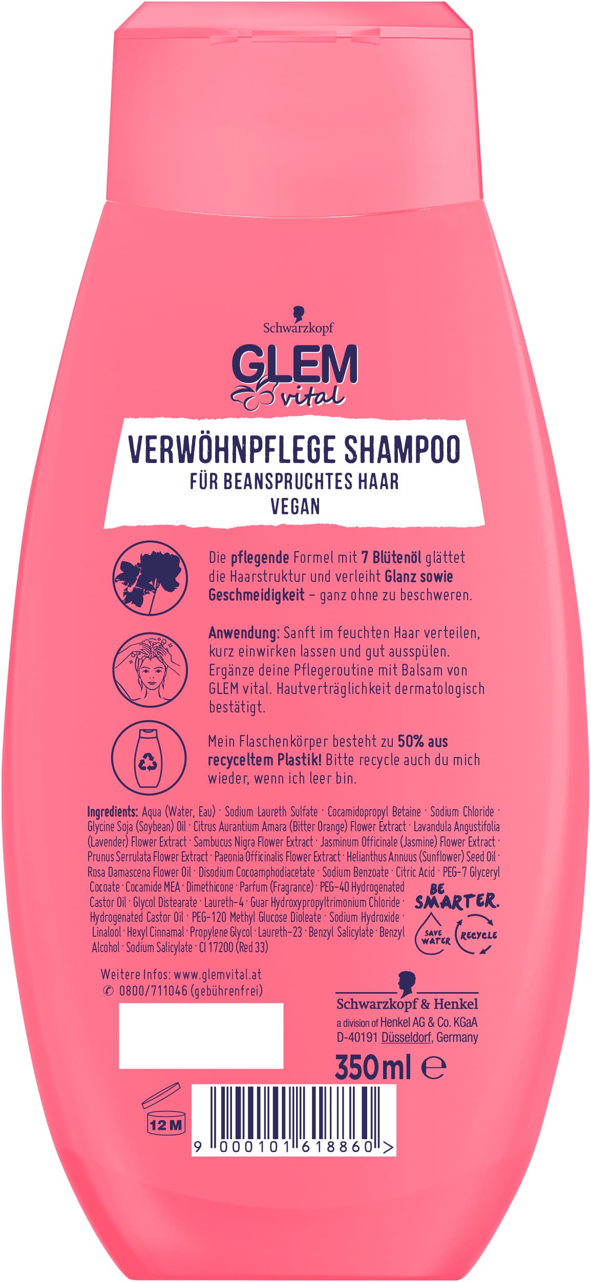 Mit dem Tiefenpflege Shampoo von Glem vital wird beanspruchtes Haar wieder wunderbar glänzend. Seine Formel mit wertvollen Ölen dringt in alle Haarschichten und pflegt tiefenwirksam ohne zu beschweren. Die Haarstruktur wird verbessert und Ihr Haar gewinnt an Glanz und Geschmeidigkeit. Für eine wunderbar gepflegte Haarpracht.- Haarshampoo für beanspruchtes Haar- mit sieben Blüten-Ölen- tiefenwirksame Haarpflege- wirkt in allen Haarschichten- für geschmeidigeres und glänzendes Haar- beschwert nicht