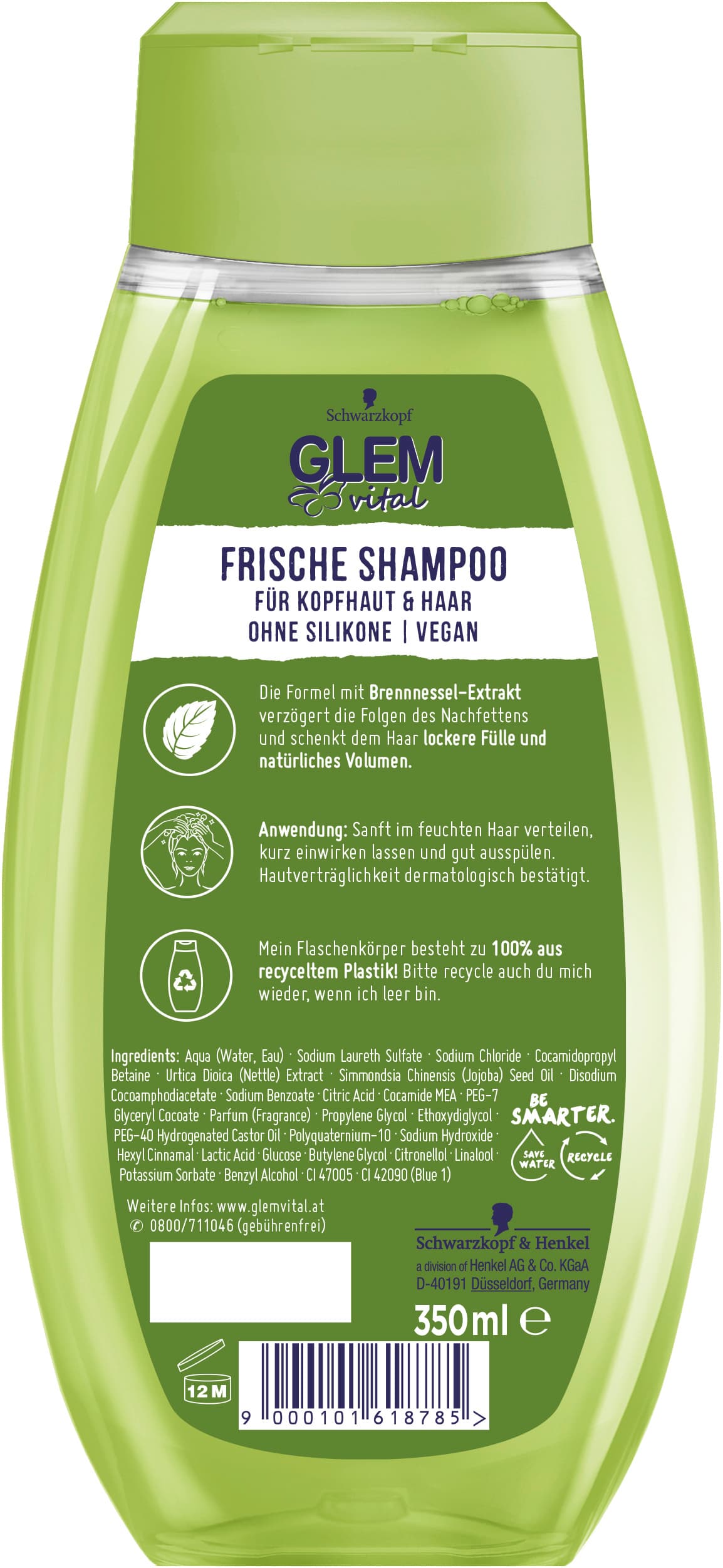 Das Frische Shampoo von Glem vital verzögert die Folgen des Nachfettens der Haare und verleiht eine voluminöse, füllige Haarpracht. Bis zu 48 Stunden lang spendet das Haarshampoo Frische und macht das Haar spürbar kraftvoller. Für eine gepflegte Kopfhaut und voluminöses, frisches Haar - vom Ansatz bis in die Spitzen.- Shampoo für Kopfhaut und Haar- verzögert die Folgen des Nachfettens- mit Brennnessel- schenkt dem Haar lockere Fülle und Volumen- bis zu 48 Stunden Frische