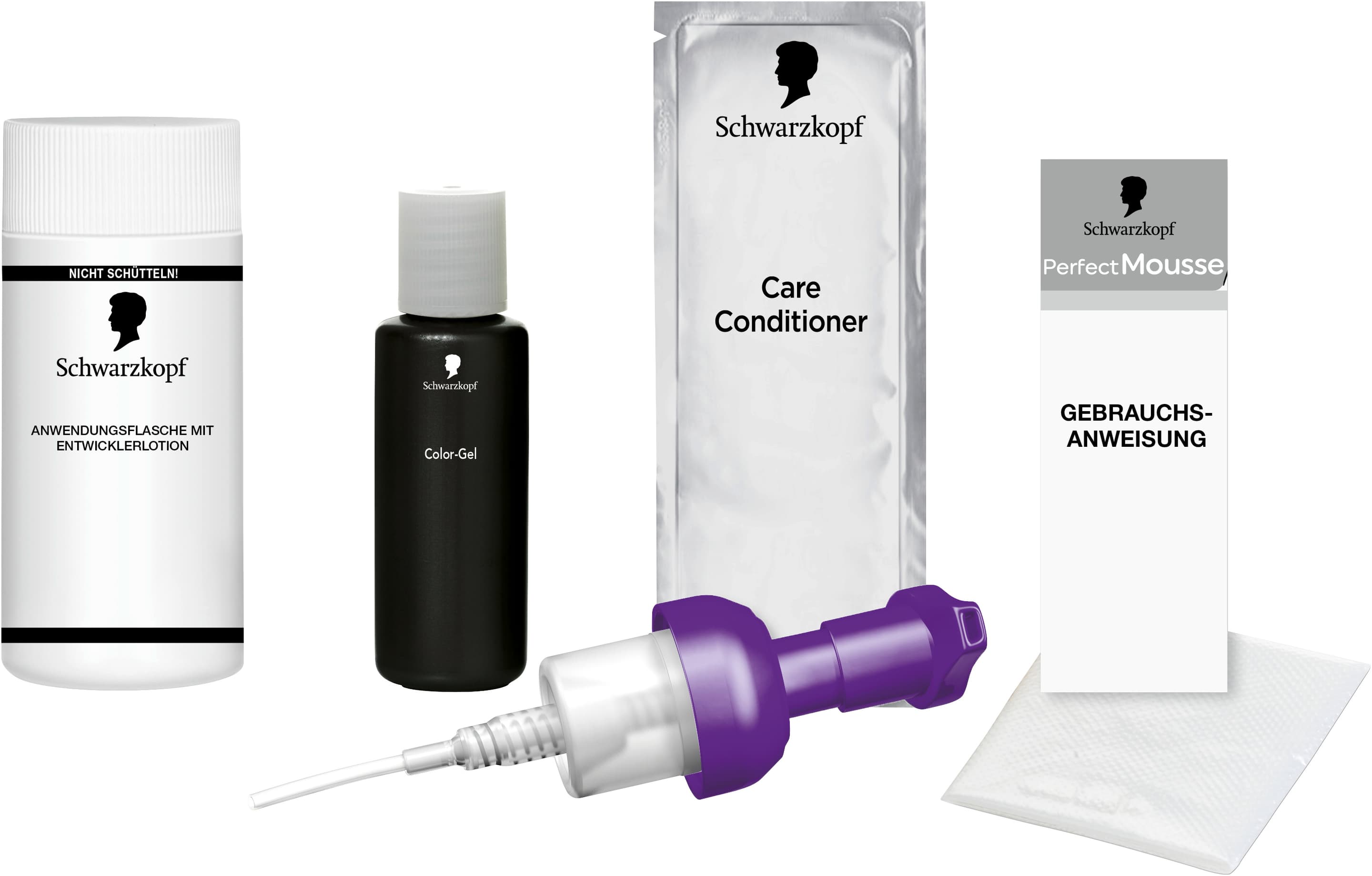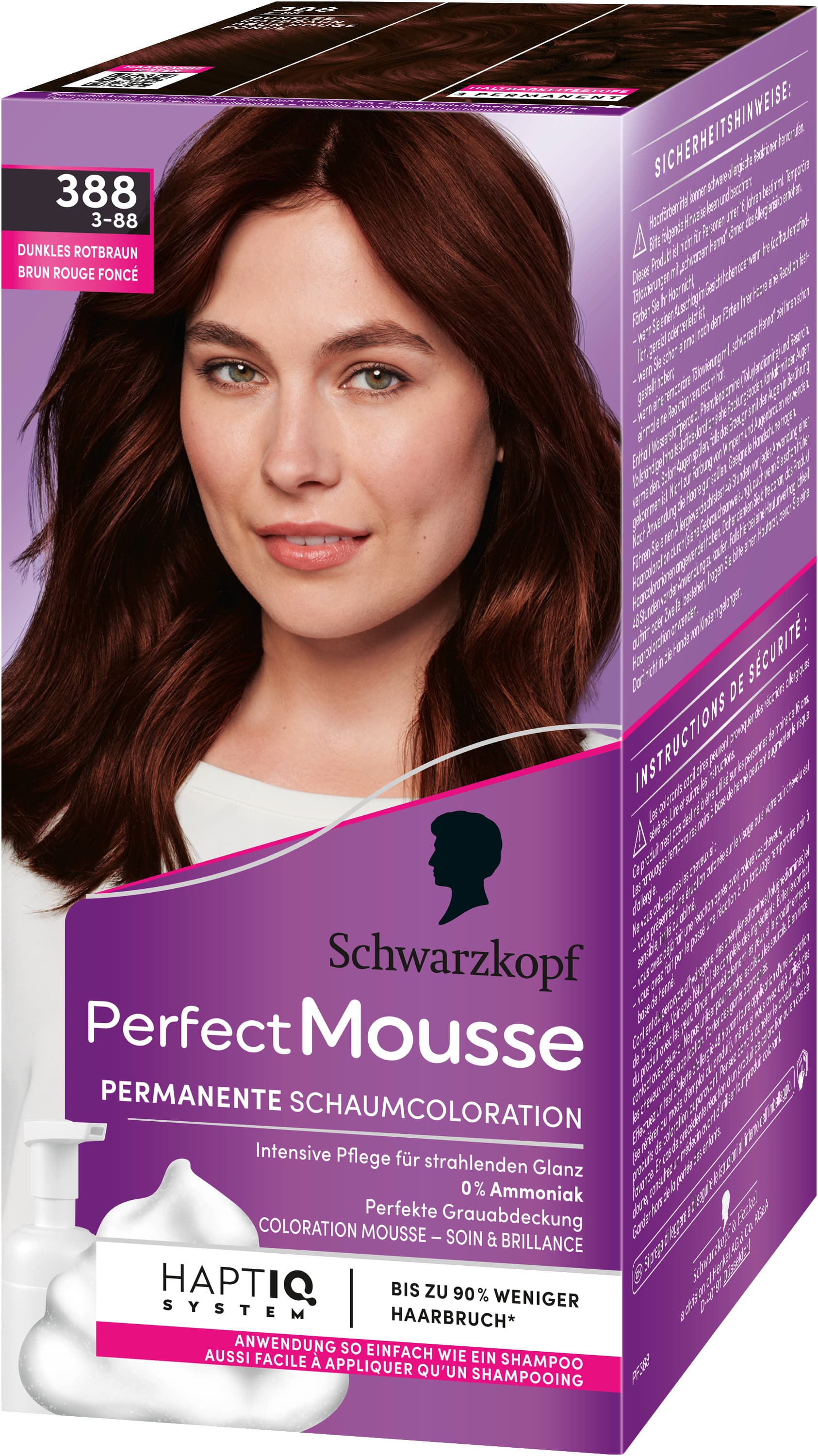 Perfect Mousse – permanente Schaumcoloration mit perfekter Grauabdeckung und intensiver Pflege für strahlenden Glanz. Anwendung so einfach wie ein Shampoo. Ohne Ammoniak! Mit HaptIQ System in der Nachbehandlung für bis zu 90, weniger Haarbruch.,Einfache Anwendung und ein perfektes Farbergebnis.Die intensive und pflegende Schaumcoloration sorgt für ein einfaches und gleichmäßiges Auftragen, ohne zu tropfen.Intensiver Glanz.Erleben Sie natürlich aussehende Farben mit strahlendem Glanz und perfekter Grauabdeckung.Starke Pflegeleistung.Die Kombination aus Schaumcoloration und pflegendem Conditioner pflegt das Haar tiefenwirksam und lässt es gesund aussehen. 96 %, , der Inhaltsstoffe des Conditioners sind natürlichen Ursprungs (, , einschließlich Wasser).Mit HaptIQ System – von Schwarzkopf Haarexperten entwickeltDie besondere Conditioner-Formel mit HaptIQ System pflegt Ihr Haar wie folgt:1. Neue Mikroverbindungen werden im Haar gebildet.2. Die Haare werden nach dem Colorieren mit einer Schutzschicht umhüllt.3. Die Haarfasern werden von innen gestärkt – für bis zu 90 % weniger Haarbruch, und für langanhaltende Farbergebnisse.HaptIQ – Wunderschöne Haarergebnisse, die Sie fühlen können.Wir empfehlen diese Nuance für mittelbraunes bis schwarzes Haar., Instrumenteller Test mit und ohne Conditioner.