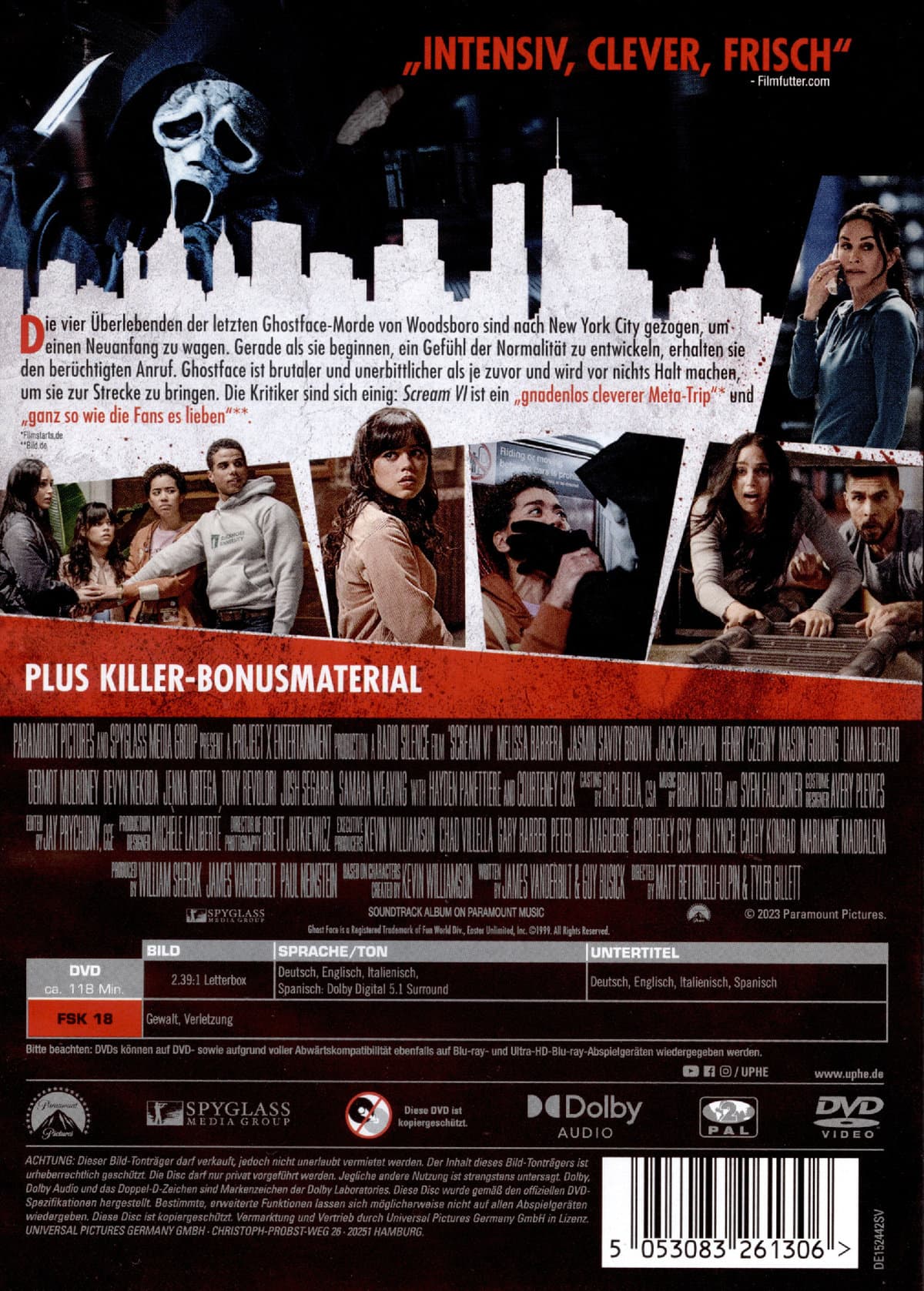 Die Schwestern Sam und Tara Carpenter haben genauso wie die Zwillinge Chad und Mindy Meeks die letzten Ghostface-Morde überlebt. Sie wollen die traumatischen Ereignisse von Woodsboro hinter sich lassen und in New York einen Neuanfang wagen. Allerdings scheint der Killer ihnen gefolgt zu sein und zieht jetzt mordend durch ihre Stadt. Obwohl die vier bereits ihre Erfahrungen mit Ghostface gemacht haben, müssen sie feststellen, dass dieser Killer ganz neue Tricks auf Lager hat. Presse: Intensiv, Clever, Frisch!" - (Filmfutter.com)