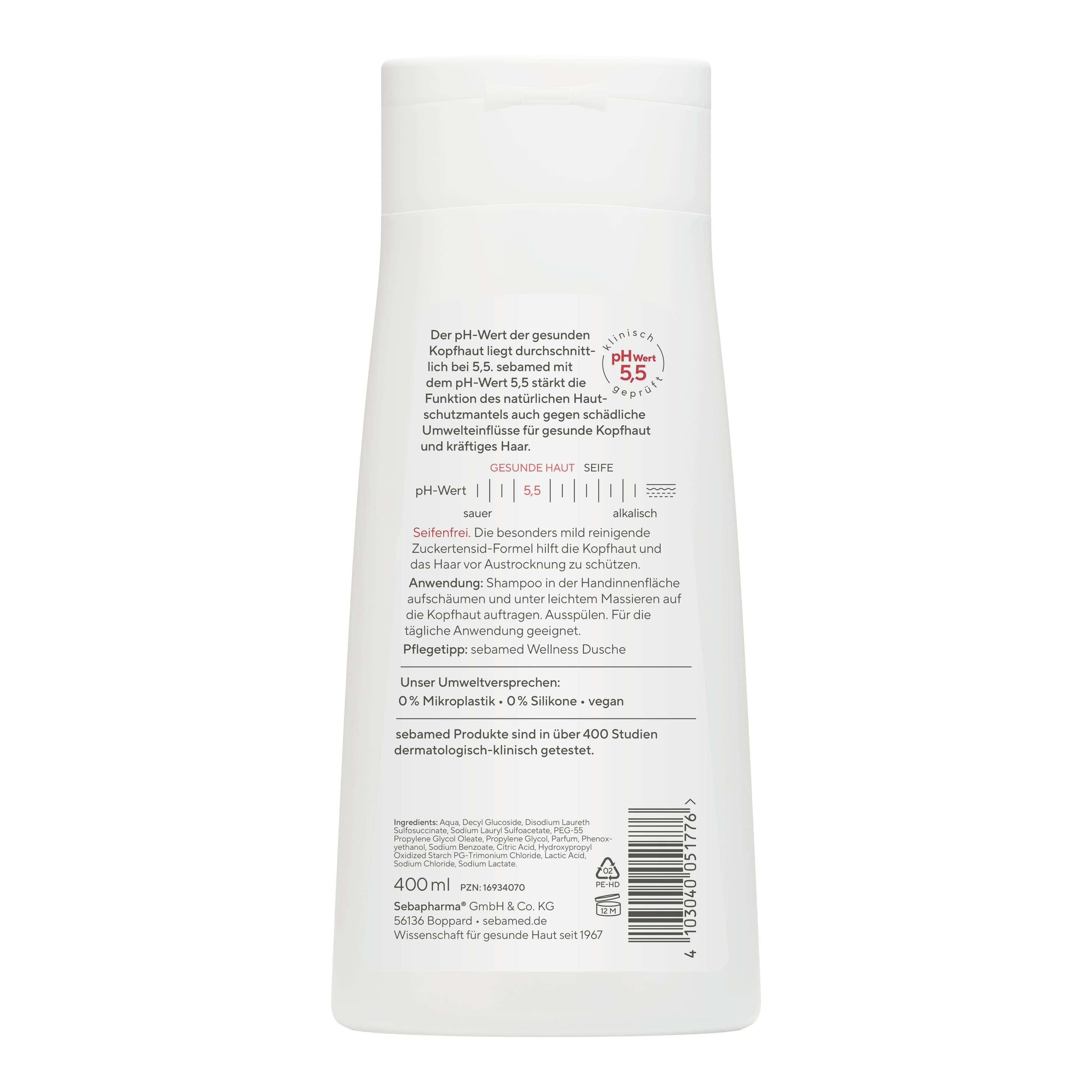 Every-Day Shampoo, Zuckertensid-Formel. Schonende Reinigung, sanft zur Kopfhaut, seifenfrei. Die besonders mild reinigende Zuckertensid-Formel hilft die Kopfhaut und das Haar vor Austrocknung zu schützen.Unser Umweltversprechen: 0% Mikroplastik, 0% Silikone, vegan.sebamed Produkte sind in über 400 Studien dermatologisch-klinisch getestet. Medizinische Hautpflege. Made in Germany.