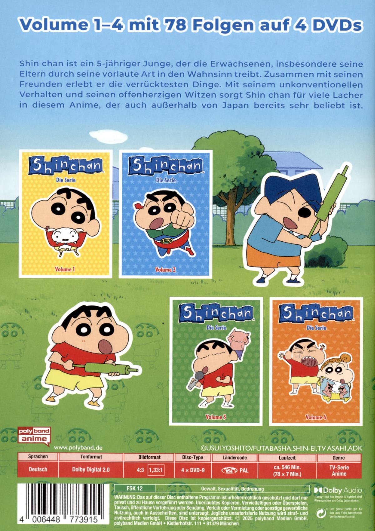 Shin chan ist ein 5-jähriger Junge, der die Erwachsenen, insbesondere seine Eltern durch seine vorlaute Art in den Wahnsinn treibt. Zusammen mit seinen Freunden erlebt er die verrücktesten Dinge. Mit seinem unkonventionellen Verhalten und seinen offenherzigen Witzen sorgt Shin chan für viele Lacher in diesem Anime, der auch außerhalb von Japan bereits sehr beliebt ist.