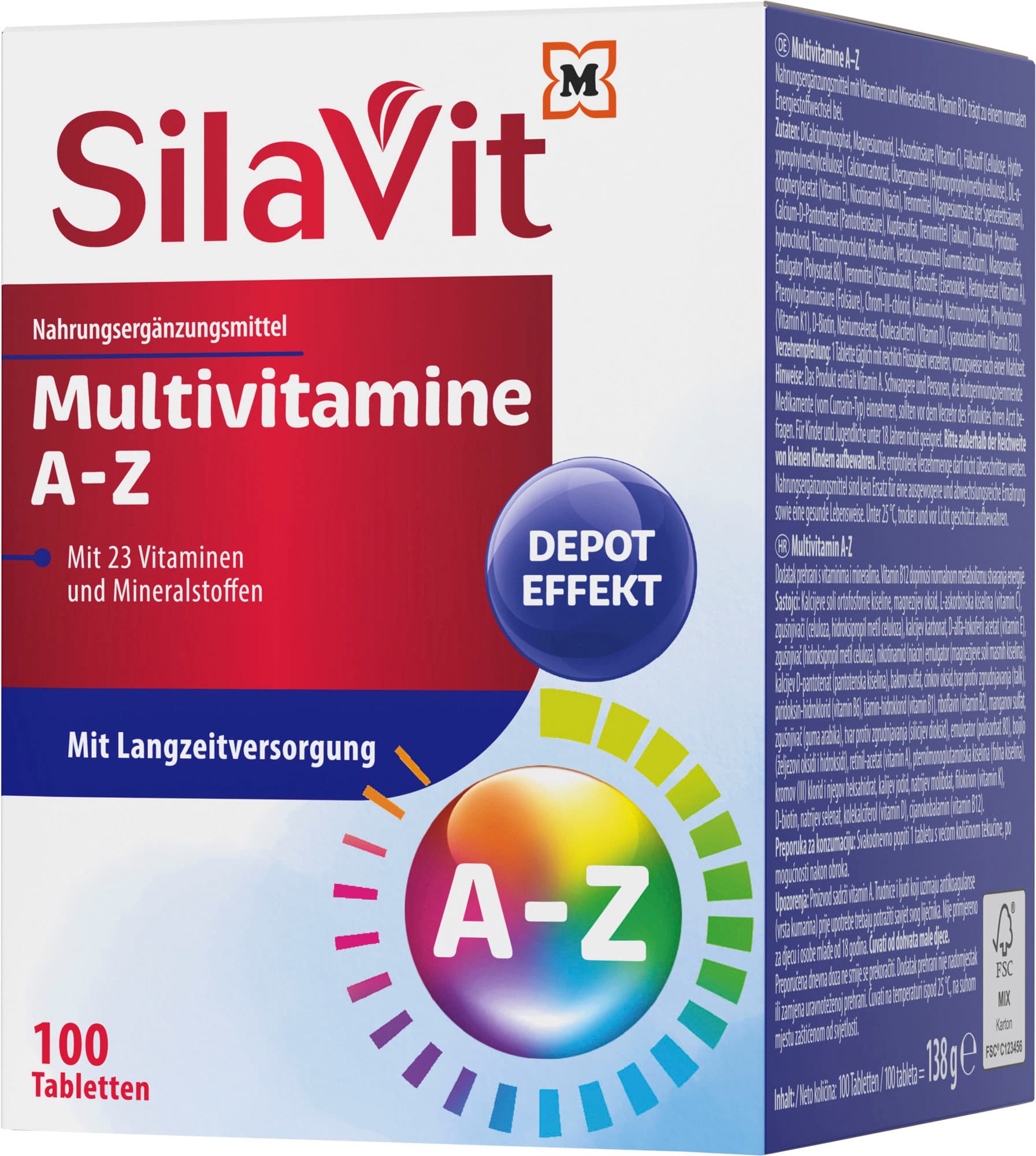 | Zutaten | Dicalciumphosphat, Magnesiumoxid, L-Ascorbinsäure (Vitamin C), Füllstoff (Cellulose, Hydroxyprophylmethylcellulose), Calciumcarbonat, Überzugsmittel (Hydroxyprophylmethylcellulose), DL-α-Tocopherylacetat (Vitamin E), Nicotinamid (Niacin), Trennmittel (Magnesiumsalze der Speisefettsäuren), Calcium-D-Pantothenat (Pantothensäure), Kupfersulfat, Trennmittel (Talkum), Zinkoxid, Pyridoxinhydrochlorid. Thiaminhydrochlorid, Riboflavin, Verdickungsmittel (Gummi arabicum), Mangansulfat, Emulgator (Polysorbat 80), Trennmittel (Siliziumdioxid), Farbstoffe (Eisenoxide), Retinylacetat (Vitamin A), Pteroylglutaminsäure (Folsäure), Chrom-III-chlorid, Kaliumiodid, Natriummolybdat, Phyllochinon (Vitamin K1), D-Biotin, Natriumselenat, Cholecalciferol (Vitamin D), Cyanocobalamin (Vitamin B12). |