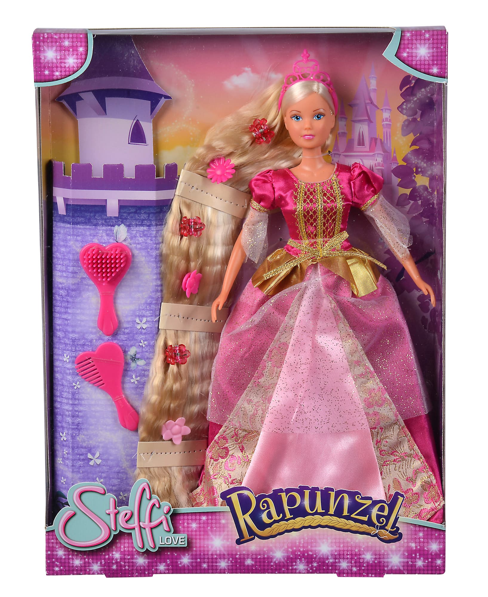 SL Rapunzel, 3-sort.: „Rapunzel, Rapunzel lasse dein Haar herunter…“. Steffis Haar ist extrem lang und kann mit Bürste, Kamm und Haarclips super schön frisiert werden. Steffis atemberaubend schönes Kleid verleiht ihr einen Hauch von einer Märchenprinzessin. Für Kinder ab 3 Jahren geeignet.