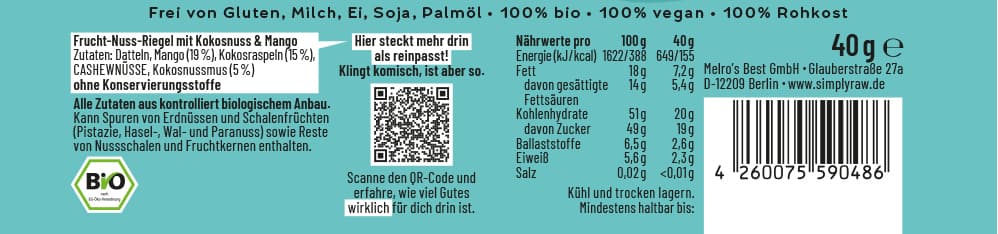 SIMPLY RAW Frucht & Nuss Kokosnuss-Mango