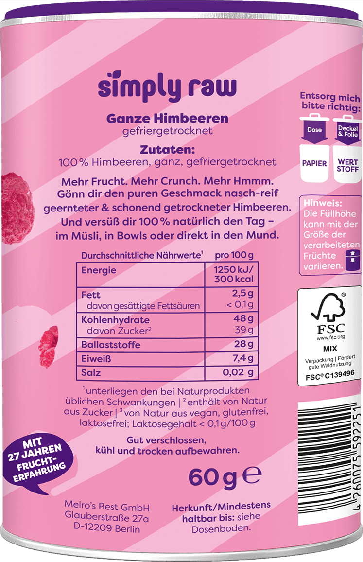 SIMPLY RAW gefriergetrocknete Himbeeren