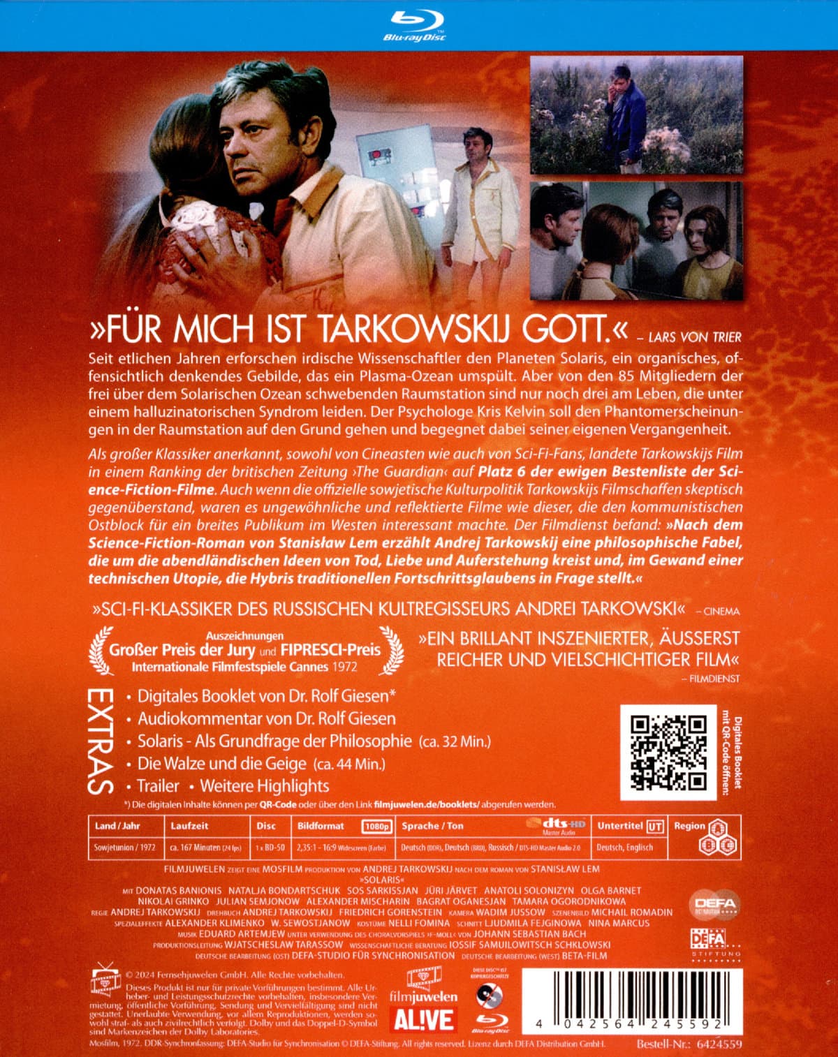 | Zusatzinfos / Bonusmaterial beim Film dabei | Digitales Booklet (online abrufbar); Audiokommentar von Dr. Rolf Giesen; Solaris ; als Grundfrage der Philosophie; Die Walze und die Geige ; Trailer; weitere Highlights; Schuber; Wendecover |