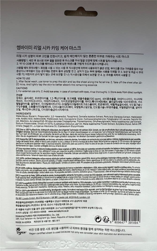 SOME BY MI Real Cica Calming Care Mask