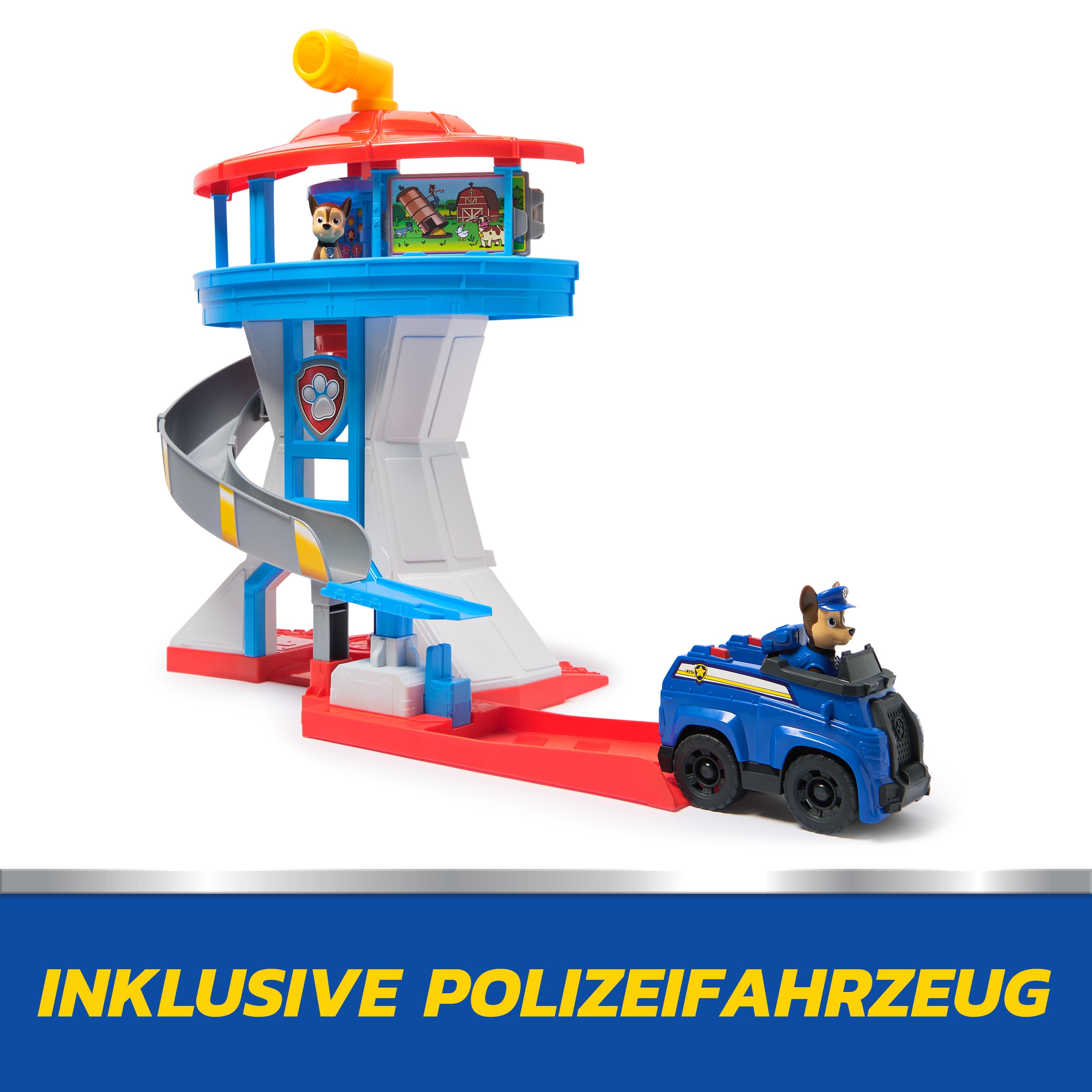 Chase kann über einen Aufzug zur Plattform der Kommandozentrale hochfahren. Mit dem Fernrohr kann er nach Missionen Ausschau halten, zum Einsatz eilt er dann über die Rutsche und kann in sein Fahrzeug springen und durch das Startkatapult direkt losrasen