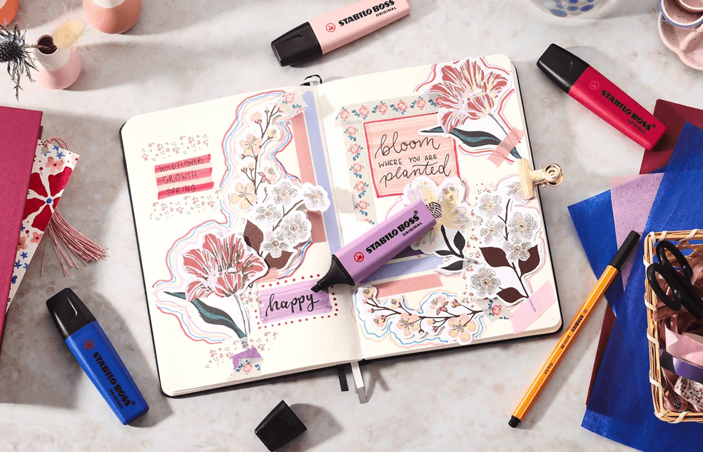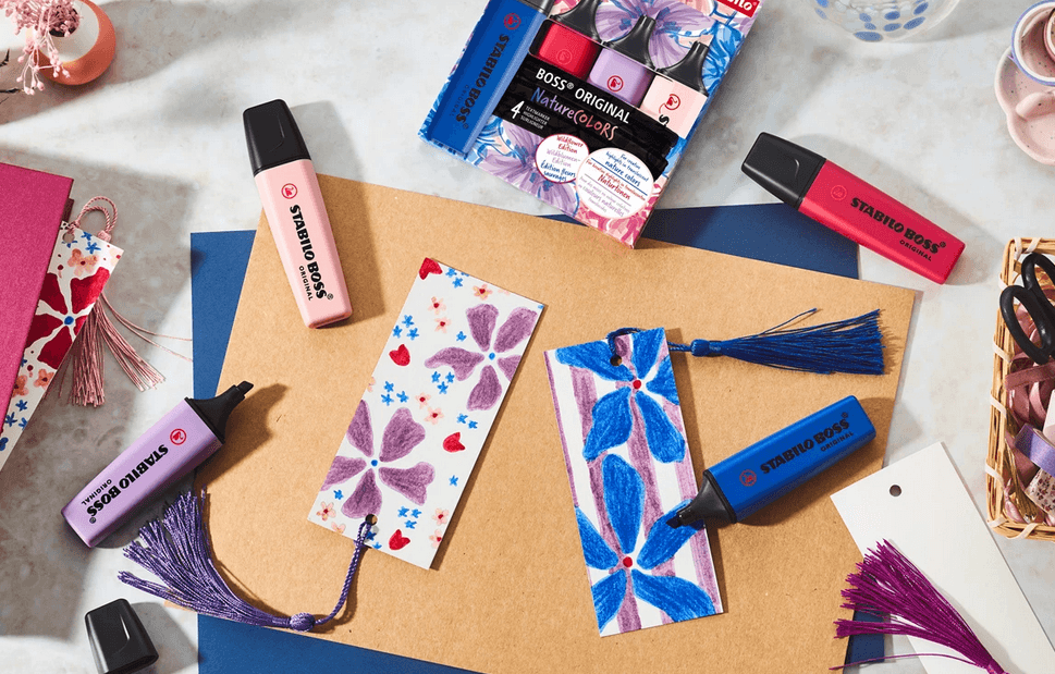 Zeitloser Textmarker in frischen, modernen Farben, inspiriert von wild blühenden Blumen.