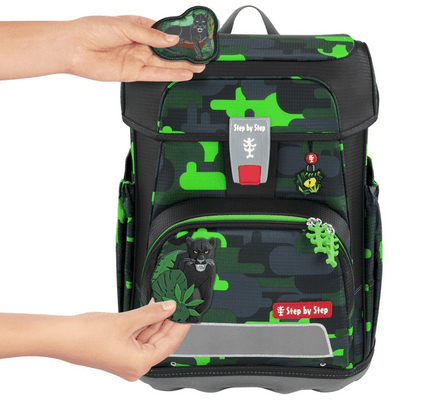 Reflektierende Elemente aus an Fronttasche, Seitentaschen und Schultergurten