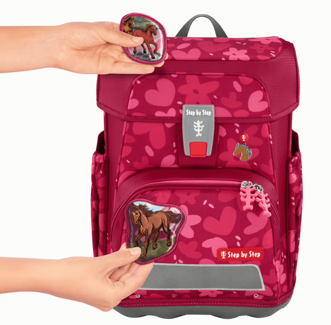 Reflektierende Elemente aus an Fronttasche, Seitentaschen und Schultergurten