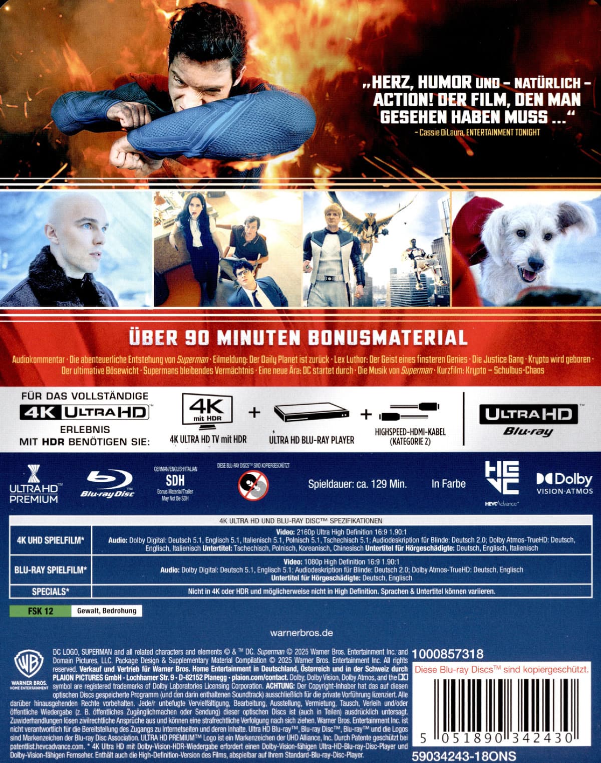 „Superman“, der erste Spielfilm von DC Studios für die große Leinwand, setzt zum Höhenflug an! In seinem unverkennbaren Stil nimmt sich James Gunn des legendären Superhelden im neu konzipierten DC-Universum an und liefert eine einzigartige Mischung aus epischer Action, Humor und Herzlichkeit. Er präsentiert einen Superman, dessen Antrieb Mitgefühl und der Glaube an das Gute im Menschen sind.