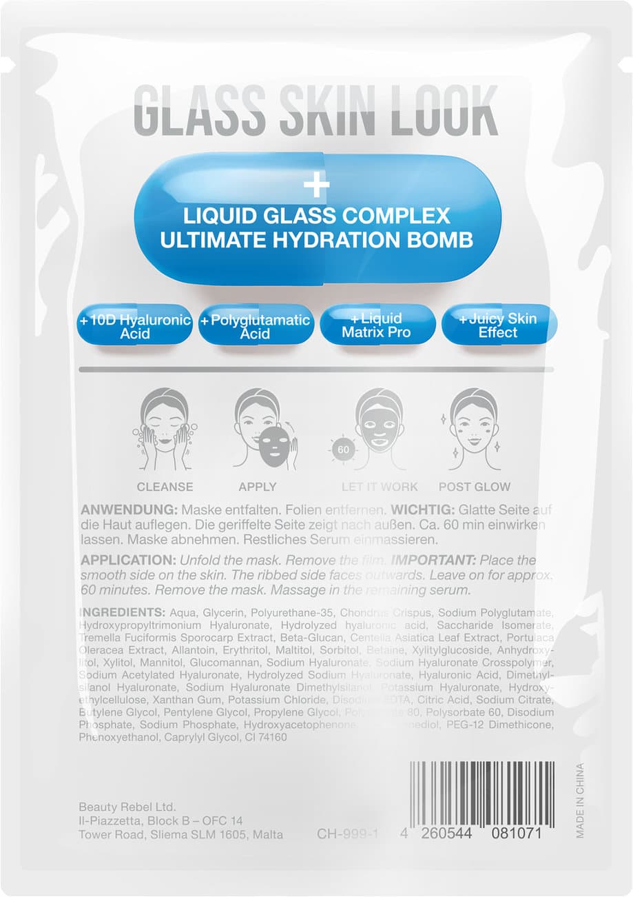 • Transparenz-Effekt : Nach 60 Minuten wird die Maske transparent – der sichtbare Glass-Skin-Moment. Für alle Hauttypen geeignet, auch bei empfindlicher Haut.
