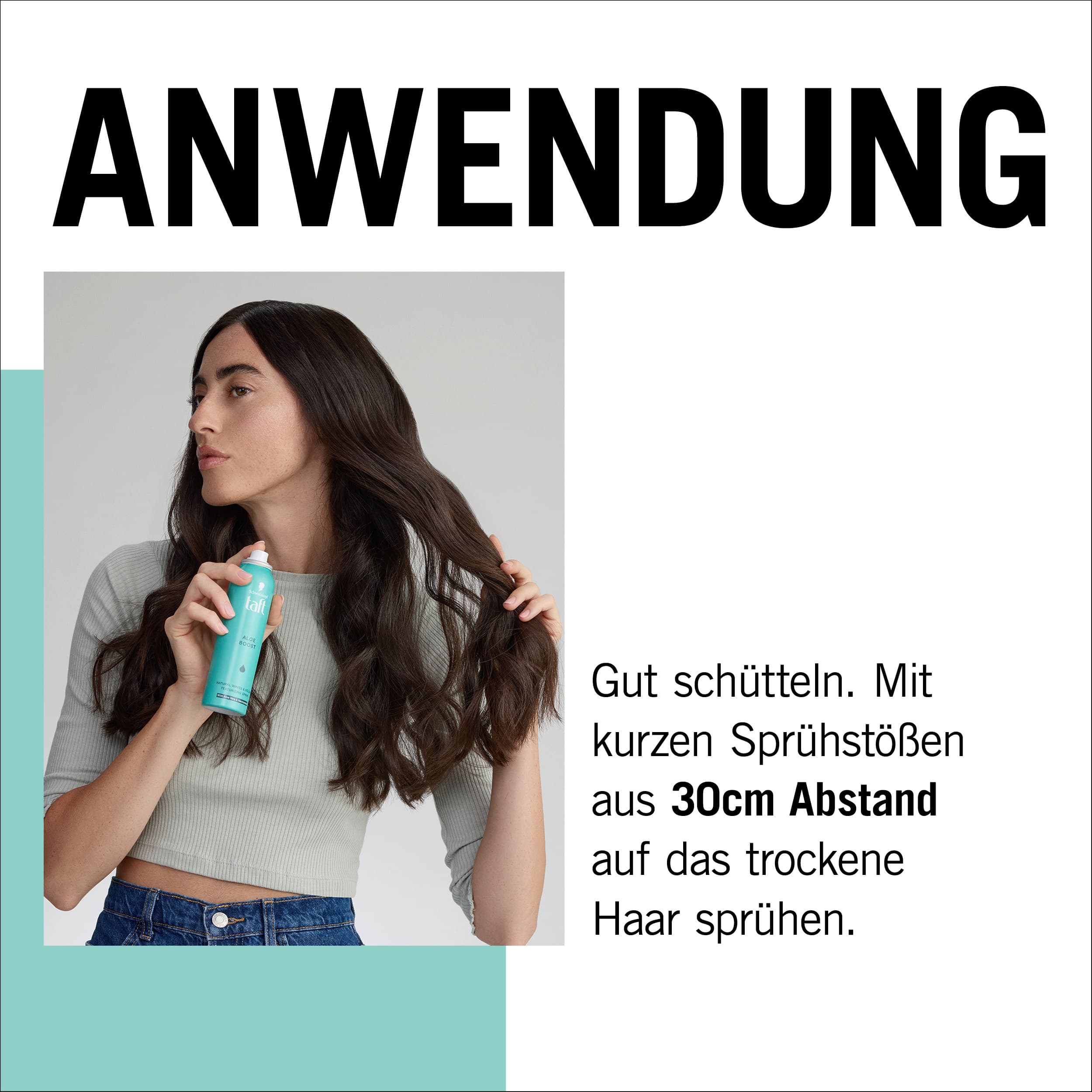 - Schützt vor Luftfeuchtigkeit – Die texturierende Formel des TAFT Sprays pflegt das Haar und hilft, die Frisur vor Luftfeuchtigkeit zu schützen