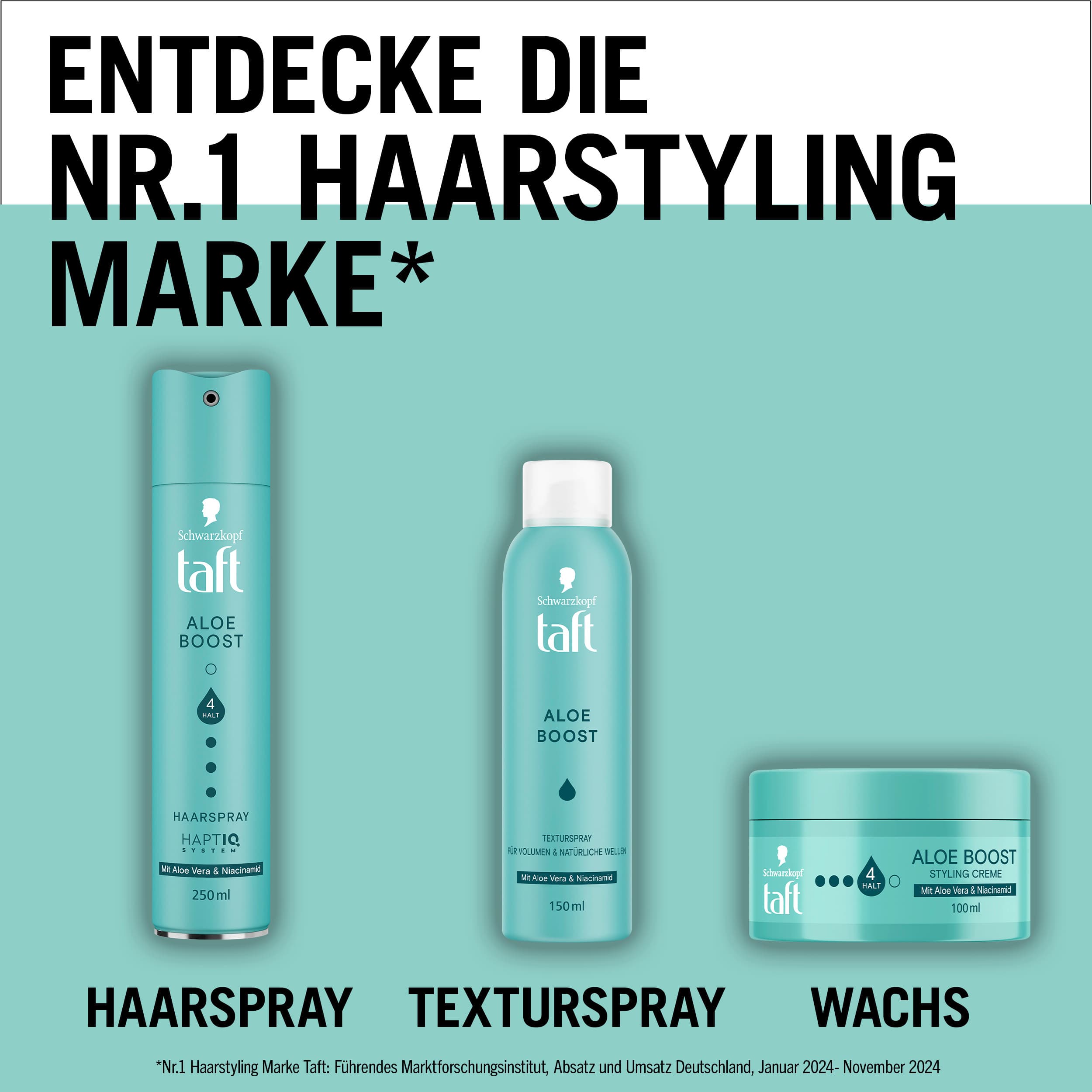 - TAFT Aloe Boost – Das TAFT Texturspray schenkt deinem Haarstyling extra Textur & Pflege und verleiht den Haaren Fülle & Volumen, für natürlich aussehende Wellen