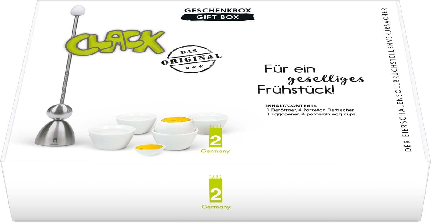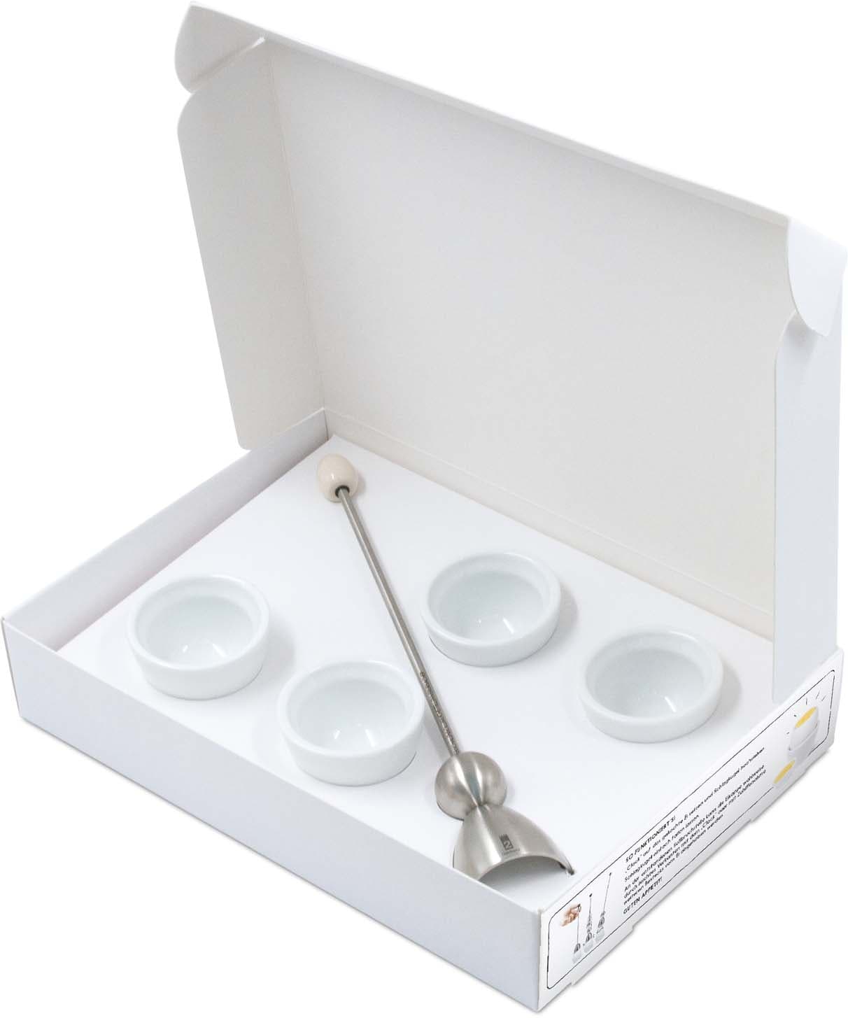 Eierknacker mit weißem Keramik-Ei.Cupido-Eierbecher aus feinem Porzellan im Quartett.Bruchsicher und versandfertig verpackt in einem weißen Karton als Maxibrief.
