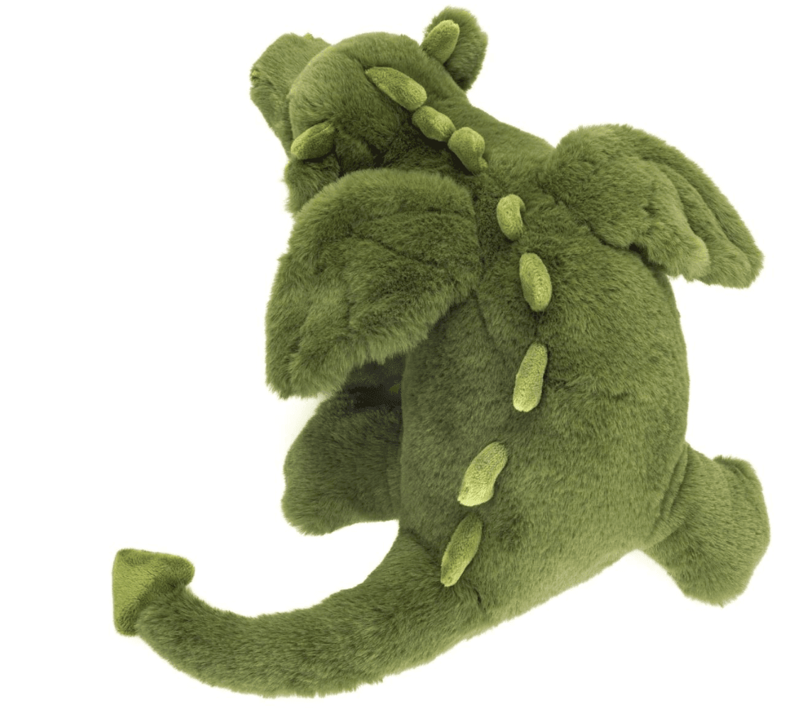 Dank seines hochwertigen, streichelweichen Polyesterplüschs liegt Drache Cleo besonders angenehm in der Hand und lädt zum Spielen, Kuscheln und Träumen ein. Die sorgfältige Handfertigung, kombiniert mit langlebigen Materialien und einer angenehm weichen Füllung aus Polyester und PE-Granulat, sorgt für eine besonders hohe Qualität und Beständigkeit.