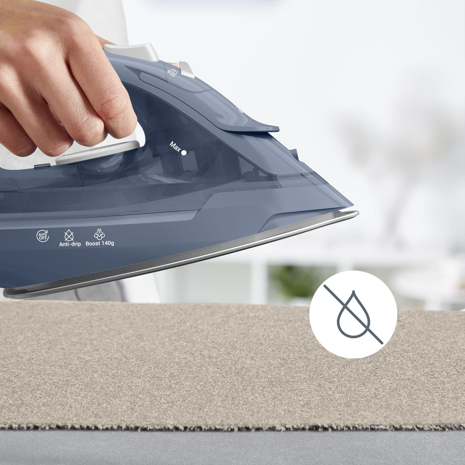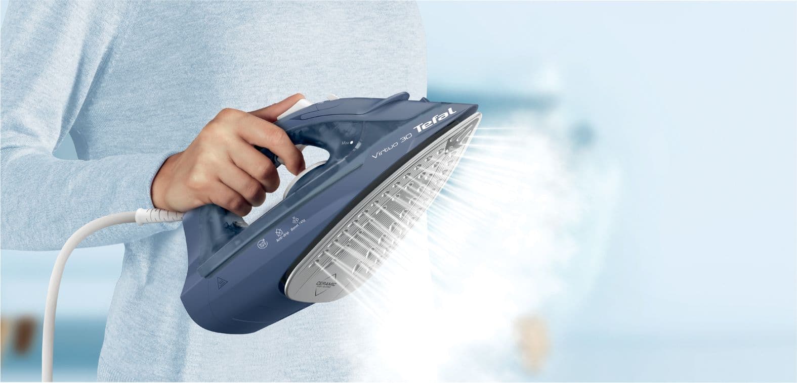 Das Tefal Virtuo 30 Dampfbügeleisen bietet ein perfektes Gleichgewicht zwischen robuster Dampfleistung und Benutzerfreundlichkeit und verspricht perfekte Wäschepflege. Dieses Dampfbügeleisen verfügt über eine Leistung von 2200 W für eine schnelle Aufheizzeit von 30 Sekunden und bietet eine Reihe praktischer Funktionen, vom automatischen Abschalten bis zum Tropfstopp. All dies mit einer kont. Dampfabgabe von 30 g/Minute für effiziente Bügelarbeiten und einem leistungsstarken Dampfstoß von 140 g/Minute, um selbst die hartnäckigsten Falten zu beseitigen.