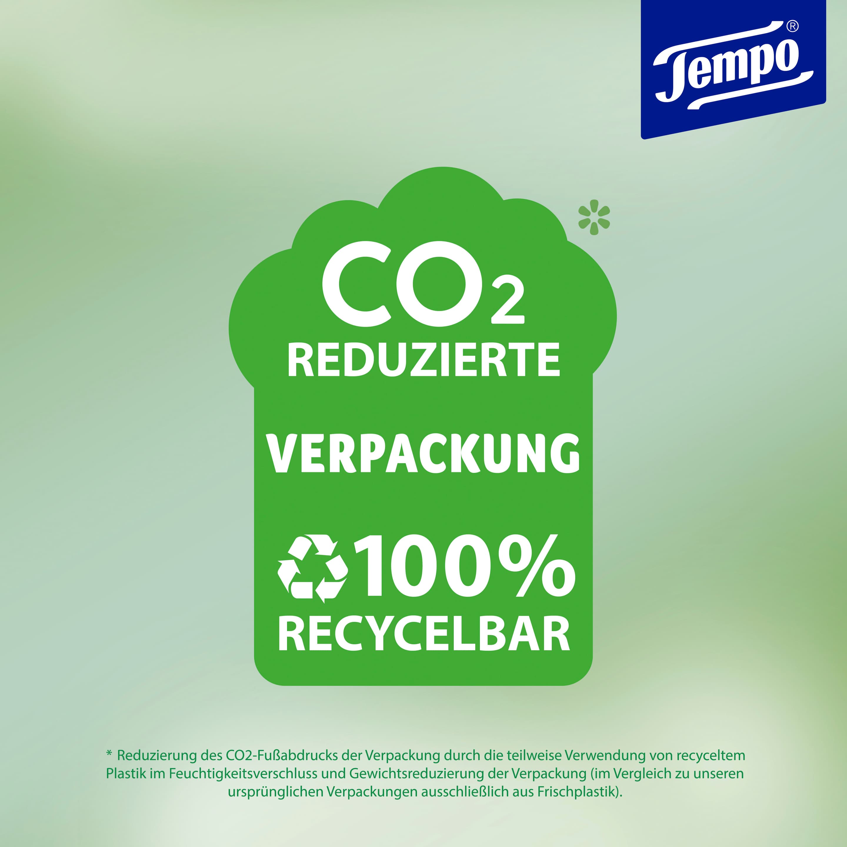***Die Verpackung ist technisch recycelbar, für verschiedene Verwendungszwecke. Das tatsächliche Recycling hängt von mehreren Faktoren ab, z.B. von der regionalen Verfügbarkeit eines Recyclingsystems. Reduzierung des CO2-Fußabdrucks der Verpackung durch die teilweise Verwendung von recyceltem Plastik im Feuchtigkeitsverschluss und Gewichtsreduzierung der Verpackung (im Vergleich zu unseren ursprünglichen Verpackungen ausschließlich aus Frischplastik), basierend auf von Essity durchgeführten und von einer dritten Partei verifizierten Lebenszyklusanalysen.