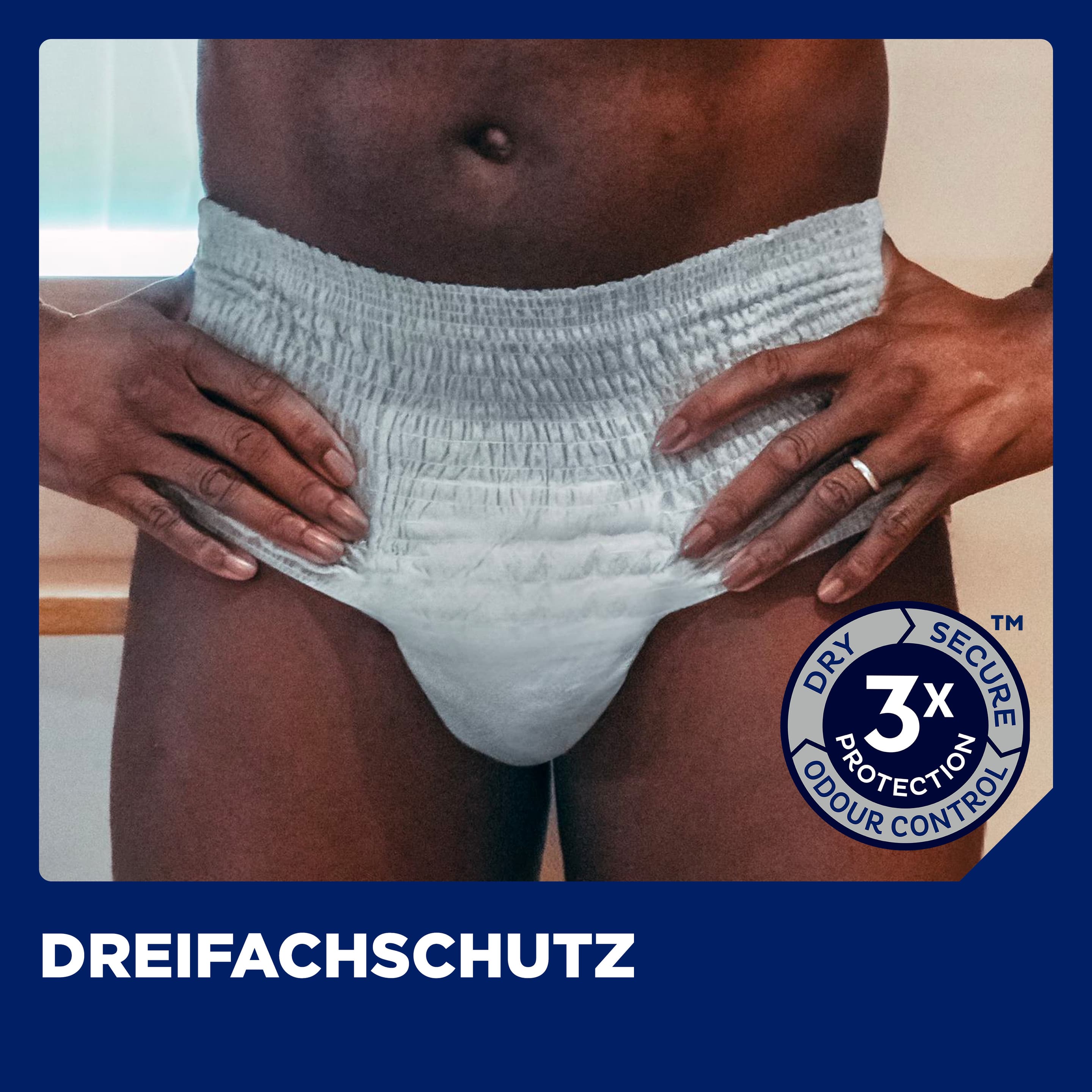Diese Pants wurden speziell für die männliche Anatomie konzipiert und ermöglichen so einen sicheren Sitz. Die sichere Absorptionszone nimmt Flüssigkeit zuverlässig auf und sorgt für ein trockenes Gefühl. Gleichzeitig werden unerwünschte Gerüche neutralisiert, was zu mehr Wohlbefinden beiträgt. Das Design orientiert sich an klassischer Unterwäsche und fällt unter der Kleidung nicht auf.
