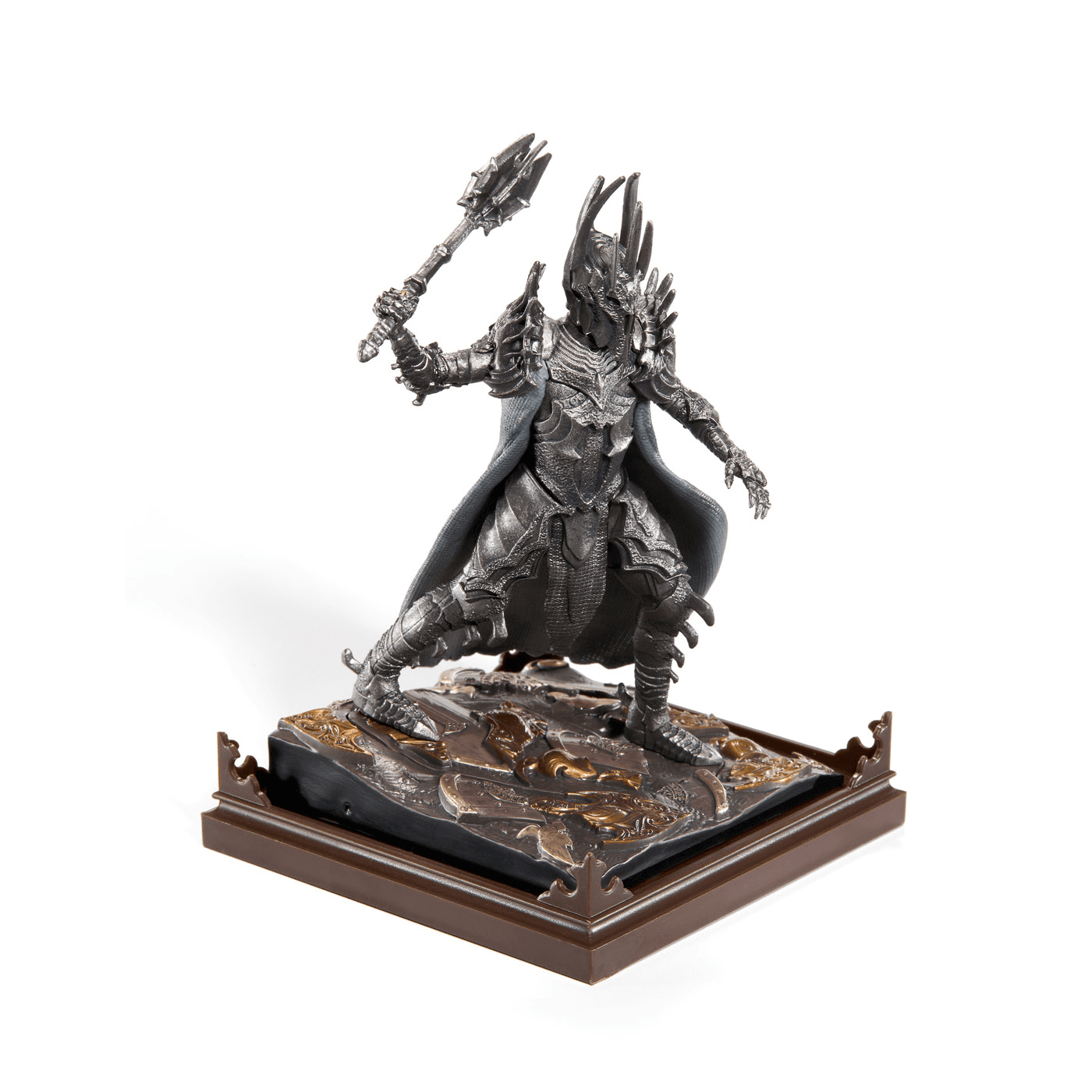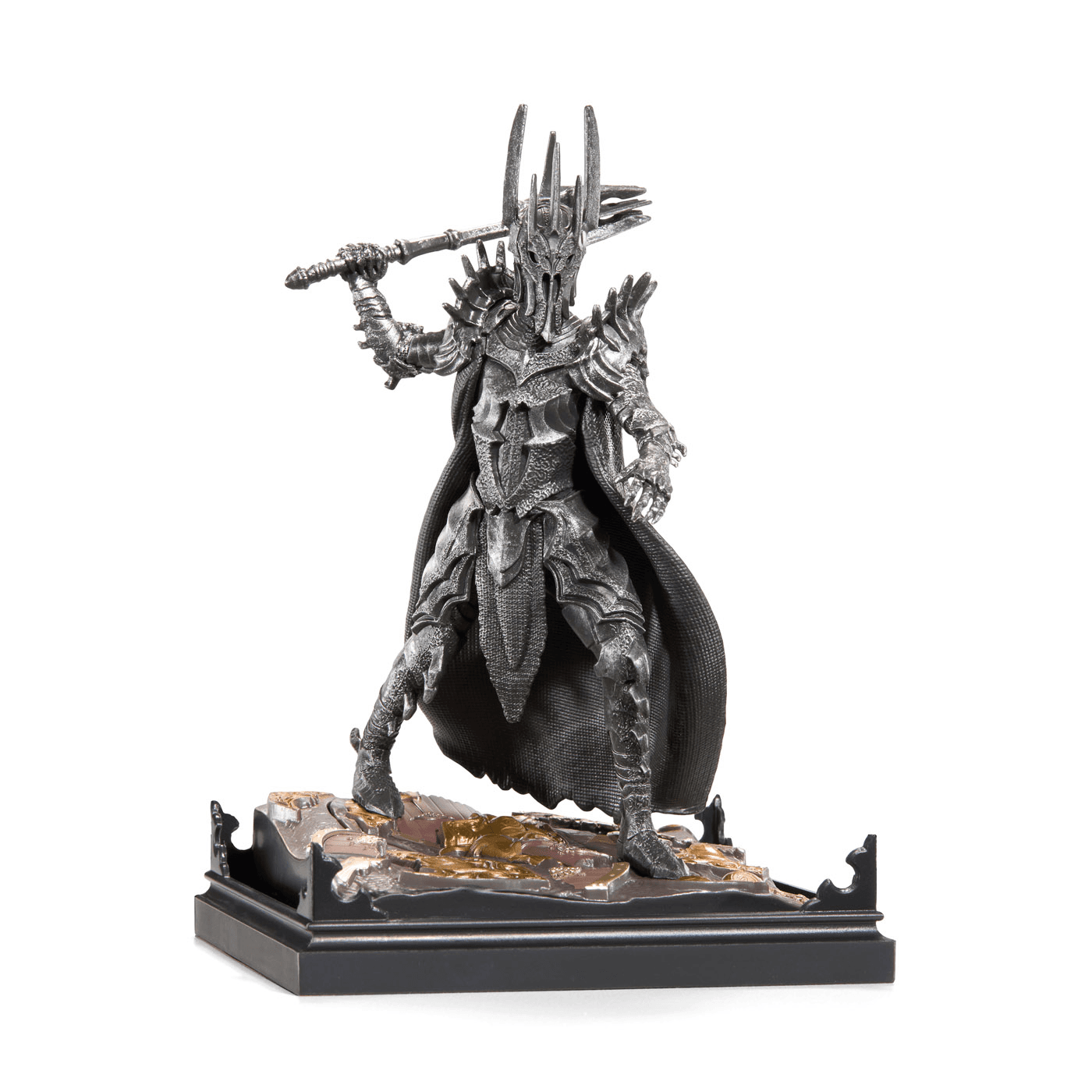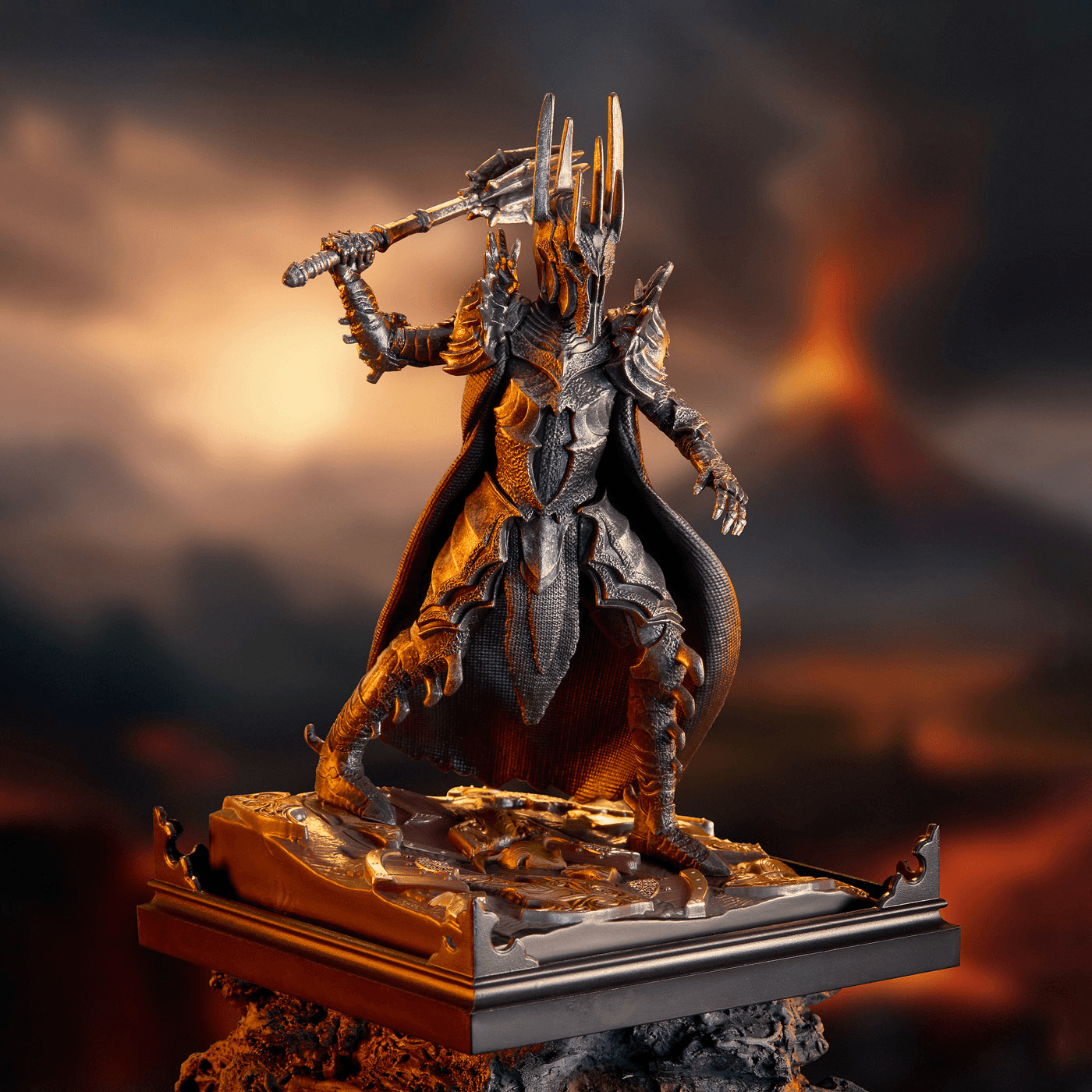 Mit einer Höhe von rund 7 Zoll wirkt das Diorama imposant und eignet sich hervorragend als dekorativer Mittelpunkt in Vitrinen oder Regalen. Besonders praktisch: Sauron ist abnehmbar von der Base, sodass die Figur flexibel präsentiert werden kann. Die stabile Standfläche unterstreicht das düstere Design und macht das Stück zu einem idealen Sammlerobjekt für Tolkien‑Fans und Liebhaber hochwertiger Fantasy‑Repliken.
