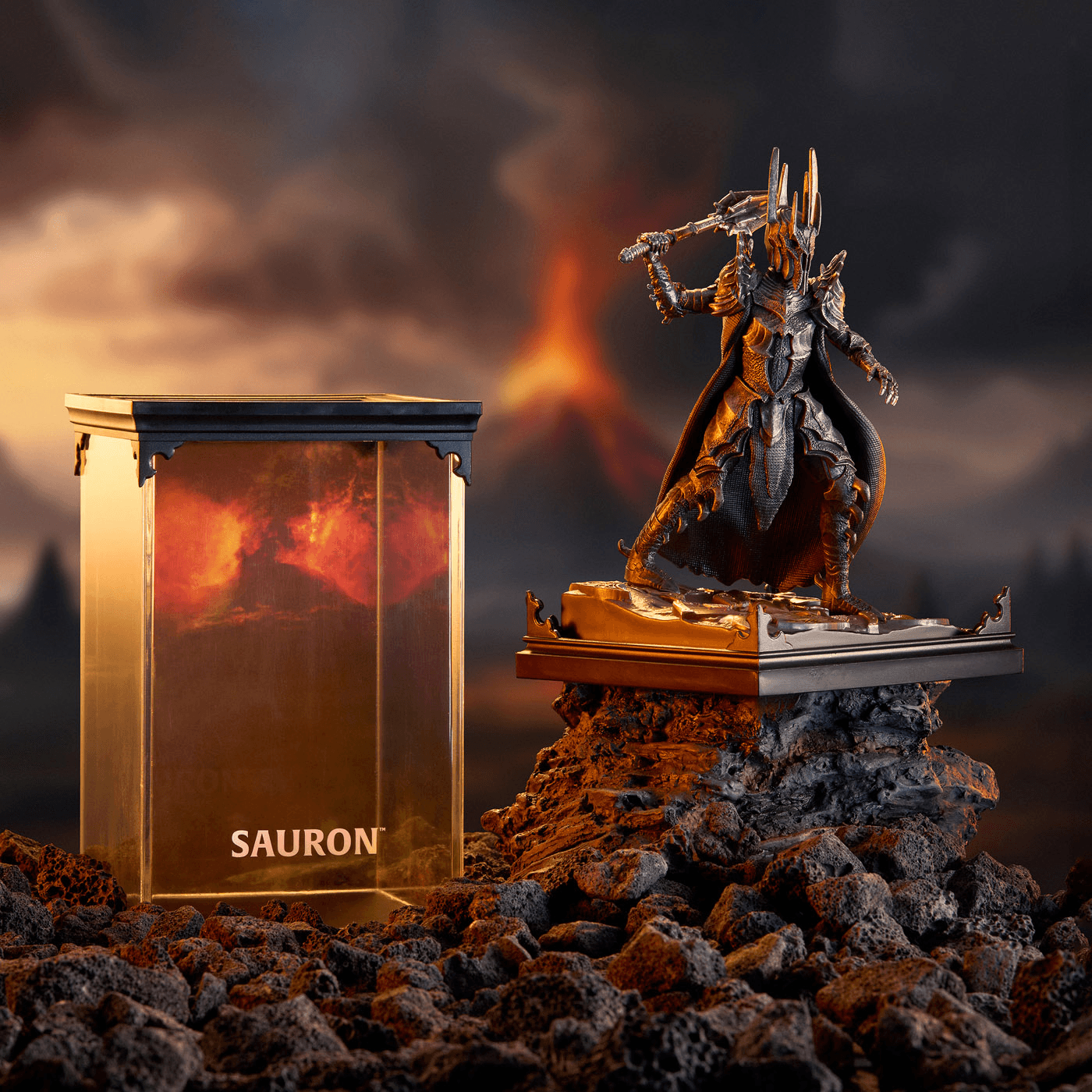 Das Sauron Diorama von The Noble Collection bringt die dunkle Präsenz des Dunklen Herrschers aus Der Herr der Ringe eindrucksvoll in jede Sammlung. Die Figur überzeugt durch ein detailliertes Sculpting und eine hochwertige, sorgfältig aufgetragene Bemalung, die die bedrohliche Erscheinung Saurons perfekt in Szene setzt.