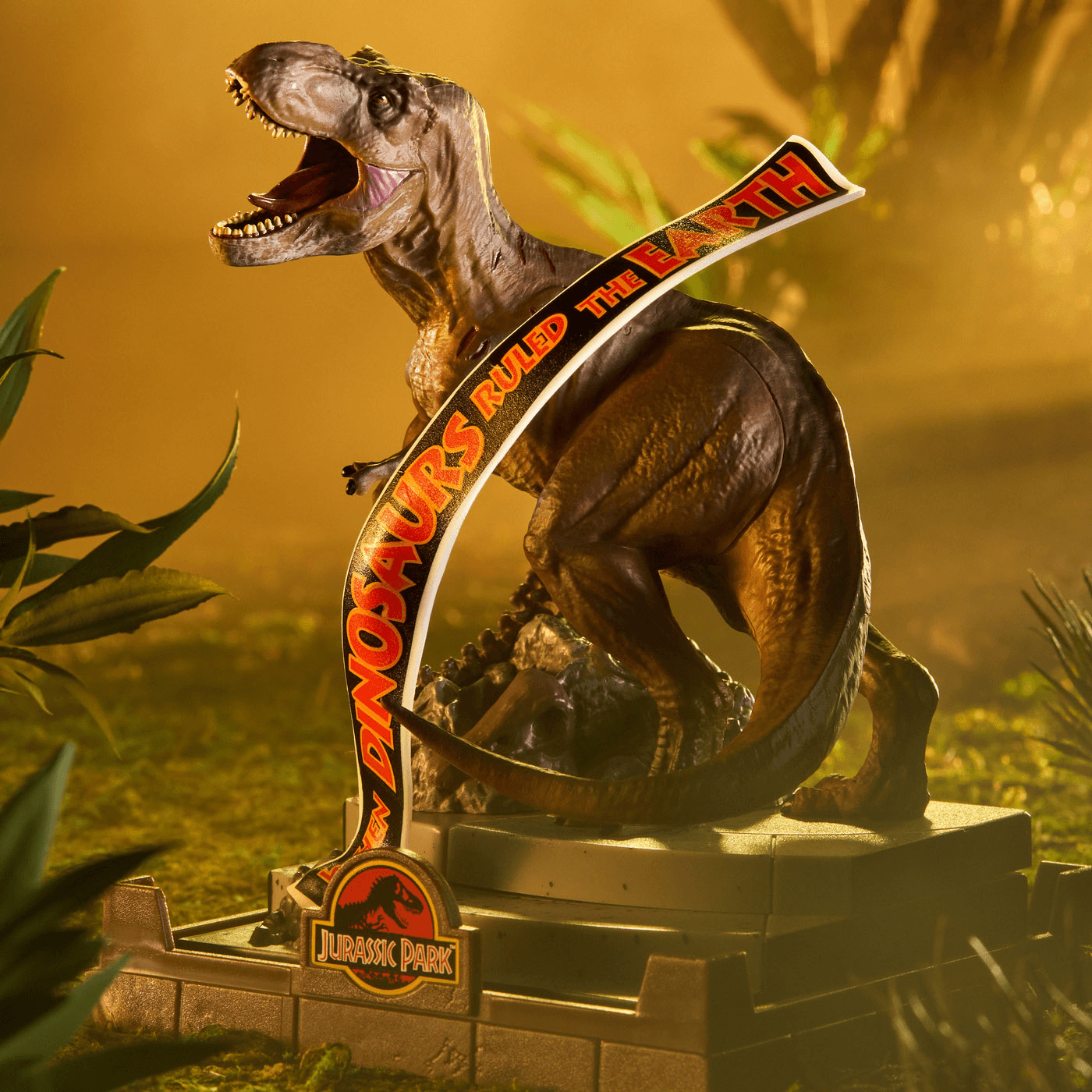 Stabile Diorama‑Base im Jurassic‑Park‑Design