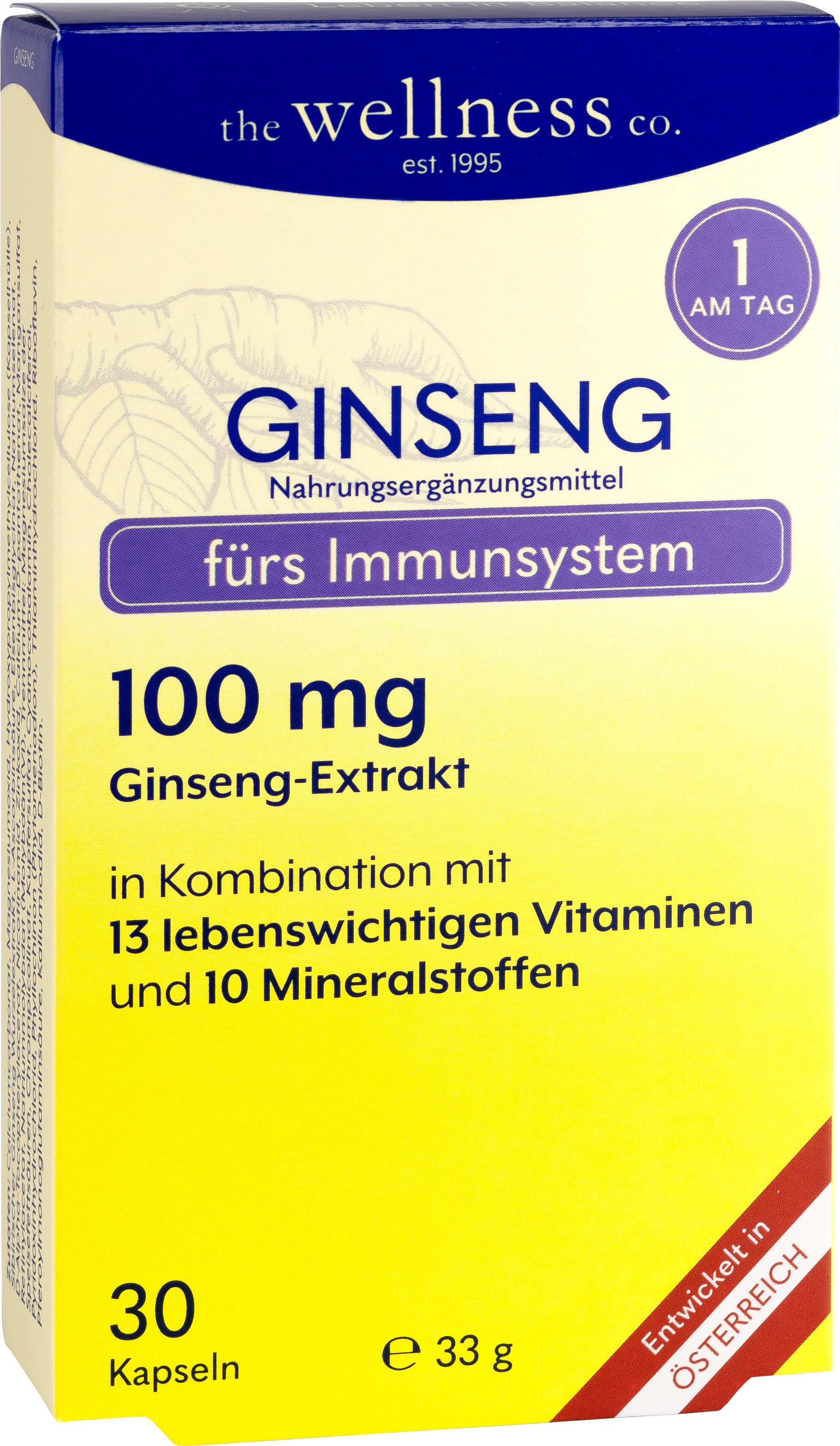 Nahrungsergänzung: 100 mg Ginseng Extrakt in Kombination mit 13 lebenswichtigen Vitaminen und 10 Mineralstoffen fürs Immunsystem.