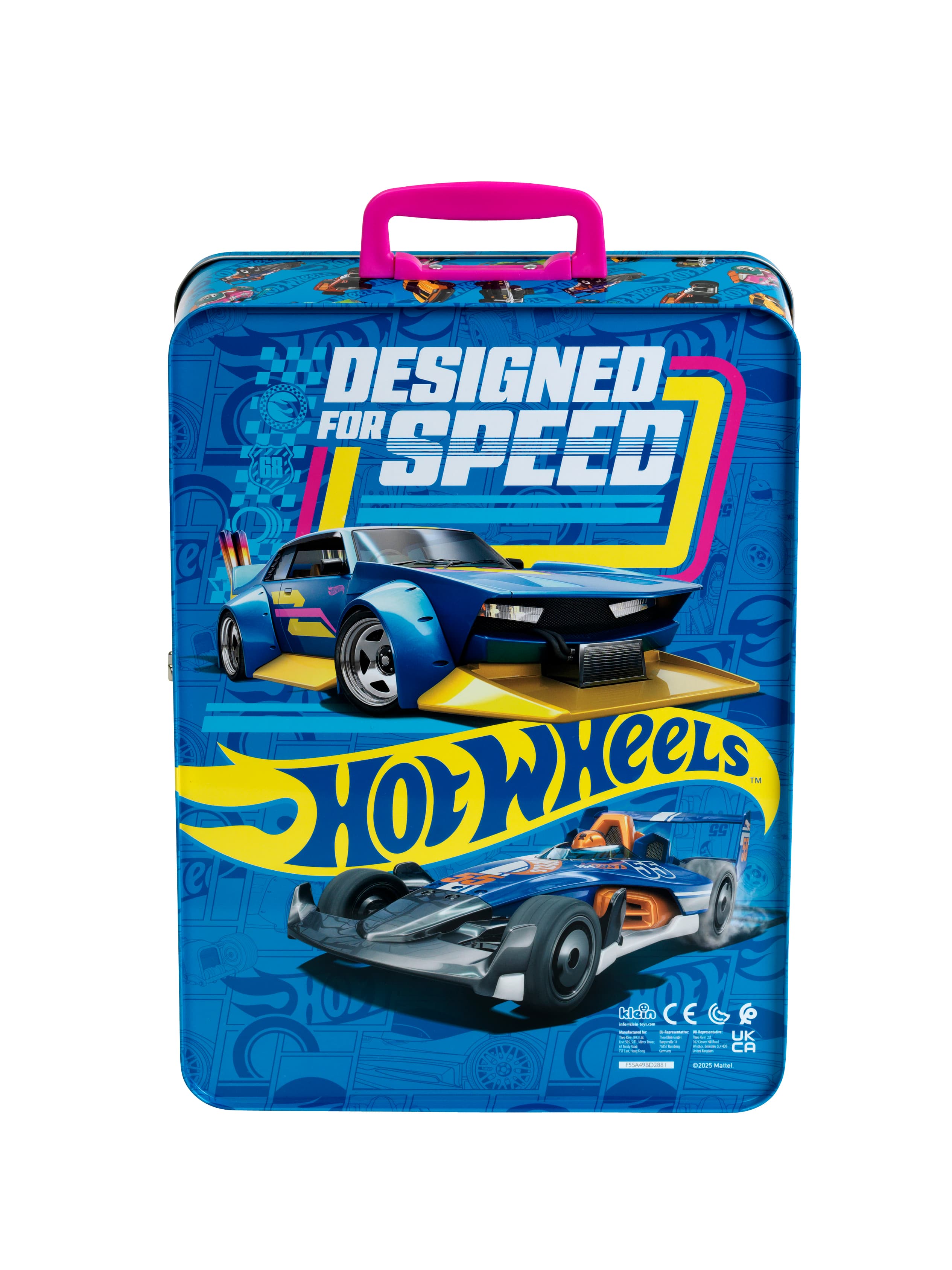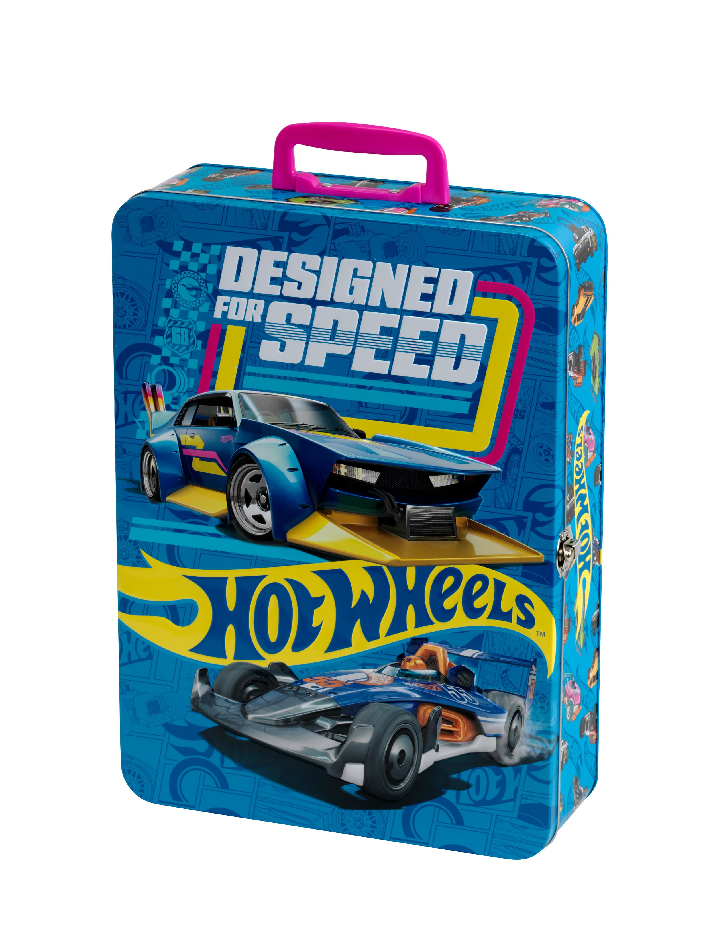 Der Hot Wheels Sammelkoffer von Theo Klein ist die ideale Aufbewahrungsmöglichkeit für die liebsten Spielzeugautos. In diesem robusten Metallkoffer finden bis zu 50 Fahrzeuge einen sicheren Platz und können dank des praktischen Griffs überallhin mitgenommen werden.