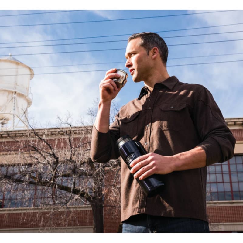 Harte Tage, lange Nächte – für besonders große Herausforderungen braucht man einen starken Willen und einen besonders langen Atem. Als Original-Thermosflasche behauptet sich die STAINLESS KING BEVERAGE BOTTLE auch dort, wo anderen die Puste ausgeht: Die besonders großzügige Füllmenge von 1,2 Litern macht diesen Thermo-Riesen zum verlässlichen Begleiter für alle, die heute noch Großes vorhaben. Der doppelwandige Edelstahl mit der THERMOS Isolierperformance stoppt den Temperaturaustausch mit der Außenwelt. So bleibt Heißes heiß und Kaltes kalt, ganze 24 Stunden. Die Edelstahl-Flasche ist unkompliziert und zuverlässig: Mit dem klassischen Klappbügel hat man auch beim Transport alles sicher im Griff. Der Twist & Pour Lid und der integrierte Trinkbecher sorgen zusätzlich für einfaches Handling in allen Lebenslagen. Die langlebigen Materialien können in den oberen Korb der Spülmaschine und machen die Reinigung zum reinsten Kinderspiel. Die hochwertige Verarbeitung bietet dabei maximale Sicherheit, auch unterwegs: die Thermosflasche ist absolut schlag‐ und bruchfest und hält dicht. Kein Auslaufen, keine Innenbeschichtung – das schont die Nerven, den Körper und die Natur. Mit der STAINLESS KING BEVERAGE gibt's einfach mehr vom guten Geschmack mit kompromisslosem Mehrwert. So lässt es sich ganz einfach unterwegs genießen wie ein King – oder eine Queen.