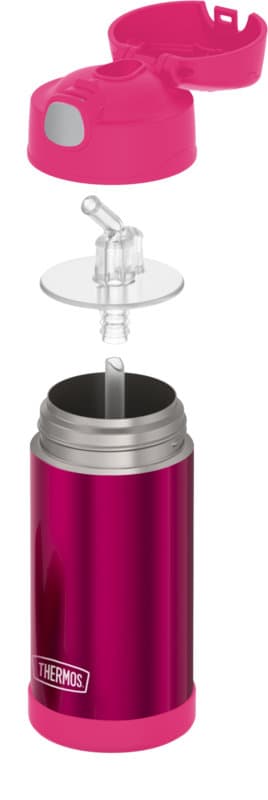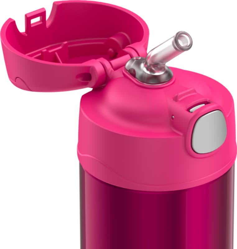 Hits for Kids! Die Isolier-Trinkflasche aus der FUNTAINER RANGE von THERMOS stürmt auf der Beliebtheits-Skala von Kindern direkt auf Platz 1: Hier gibt es Lieblingsfarbe, den integrierten Strohhalm und einen ausklappbaren Tragegriff für 100 % Trinkspaß. Unzerbrechlich, unzertrennlich! Die robuste Isolier-Trinkflasche aus schlag- und bruchsicherem Edelstahl ist der dauerhafte Kids-Begleiter im Kindergarten, in der Schule – und darüber hinaus. THERMOS garantiert bis zu 12 Stunden kalte Getränke, sodass die jüngeren Familienmitglieder noch nachmittags bei Sport und Spiel lückenlos versorgt sind. Und während die kleinen Abenteurer schlafen, kann die Trinkflasche problemlos in der Spülmaschine gereinigt werden. Mit der FUNTAINER STRAW BOTTLE kommt der Spaß nicht zu kurz – für Eltern und Kinder.