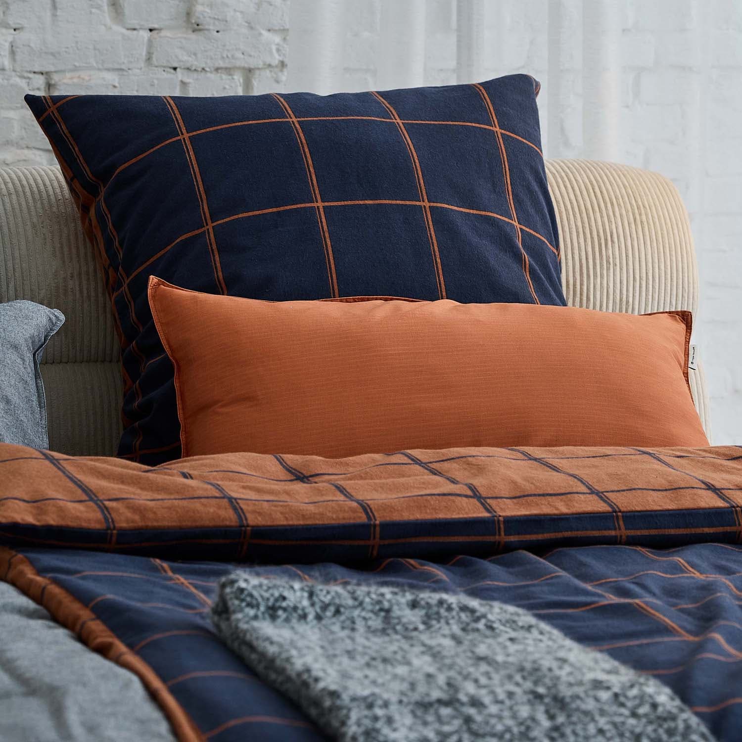 Gemütlich, stilvoll und perfekt für die kalte Jahreszeit: Erlebe die TOM TAILOR Winterbettwäsche – Dark Navy&Rusty Red aus reiner Baumwolle und genieße die ideale Kombination aus erstklassiger Qualität und modernem Design. Die großen Kacheln, die auf der Rückseite in umgekehrter Farbstellung zu finden sind, verleihen deinem Schlafzimmer einen individuellen Look. Verwandle dein Schlafzimmer in eine stilvolle Wohlfühloase! Entdecke die Vorteile von Flanell: kuschelig weich, wärmend und gleichzeitig atmungsaktiv – perfekt für die kühlen Herbst- und Winternächte. Hergestellt aus 100% Baumwolle, ist das Material hautfreundlich, pflegeleicht und garantiert besten Schlafkomfort. Flanell absorbiert Feuchtigkeit und bleibt dabei angenehm trocken und knitterarm, selbst nach vielen Wäschen. Holen Sie sich Wärme, Gemütlichkeit und Langlebigkeit in dein Zuhause! Mix and Match: Kombiniere die TOM TAILOR Winterbettwäsche – Dark Navy&Rusty Red mit passenden Dekokissen oder einer kuscheligen Decke und kreiere ein harmonisches Ambiente, das durch das abgestimmte Farbkonzept vollendet wird. COLOR CHANGES EVERYTHING!