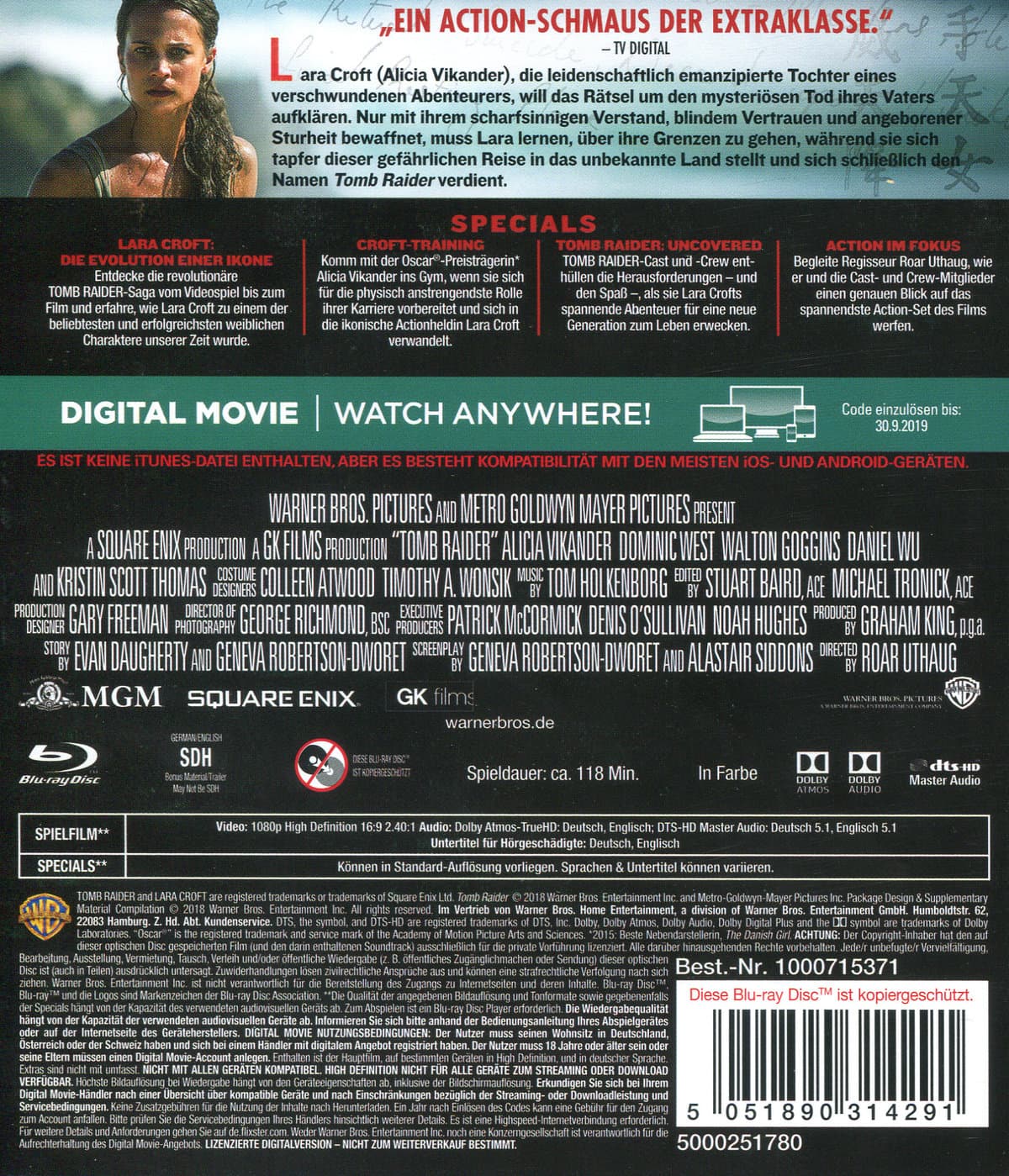 | Zusatzinfos / Bonusmaterial beim Film dabei | Lara Croft: Die Evolution einer Ikone; Croft Training; Tomb Raider: Undercovered; Action im Fokus; |