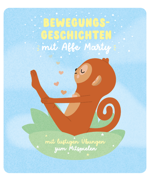 Affe Marty muss sich immer bewegen: In den Ästen klettern, Herumtoben, mit dem Schwanz wedeln. Nicht selten bringt ihn das aber auch in Schwierigkeiten. Zum Glück zeigen ihm seine Marienkäferfreundin Dottie und viele andere Tiere, wie er seine Aktivität kanalisieren und auch mal zur Ruhe kommen kann. Bewegung und Entspannung für Kinder leicht gemacht!