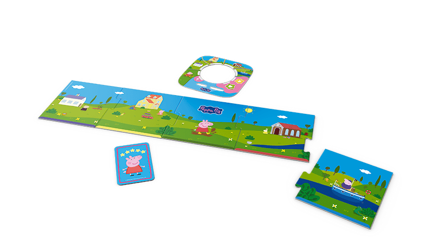 An jedem Ort warten Peppas Freunde und Freundinnen mit einer Geschichte, einem Quiz oder einem spannenden Spiel auf dich. Dreh den Controller und drück den Knopf, um auszuwählen, wohin ihr geht.
