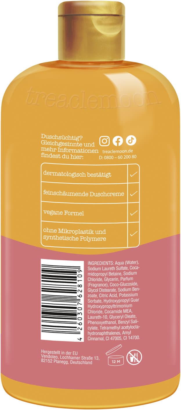 | Inhaltsstoffe | Aqua (Water), Sodium Laureth Sulfate, Cocamidopropyl Betaine, Sodium Chloride, Glycerin, Parfum (Fragrance), Coco-Glucoside, Glycol Distearate, Sodium Benzoate, Citric Acid, Potassium Sorbate, Hydroxypropyl Guar Hydroxypropyltrimonium Chloride, Cocamide MEA, Laureth-10, Glyceryl Oleate, Phenoxyethanol, Benzyl Salicylate, Tetramethyl acetyloctahydronaphthalenes, Amyl Cinnamal, CI 47005, CI 14700. |