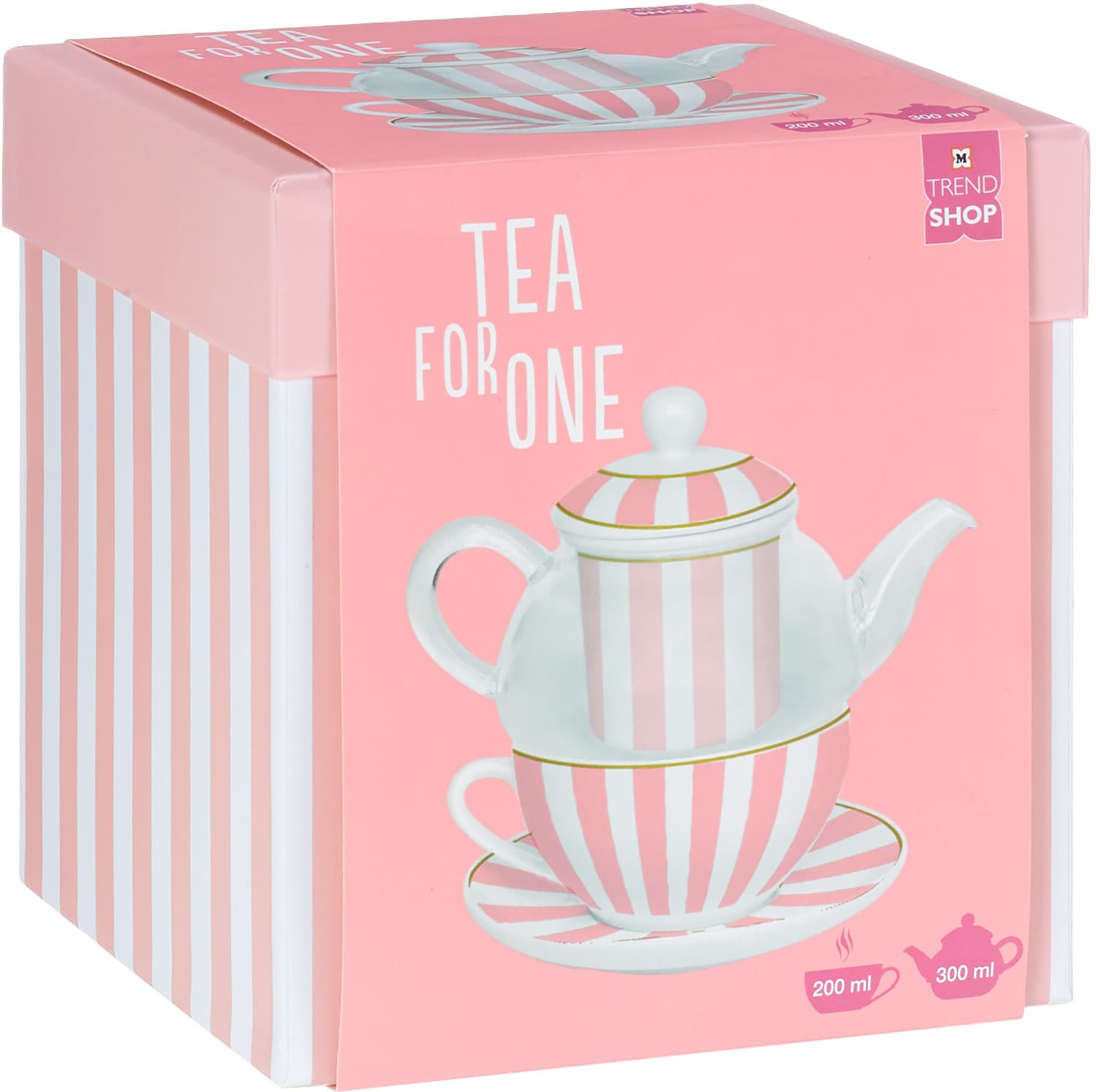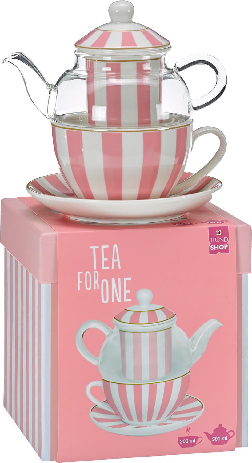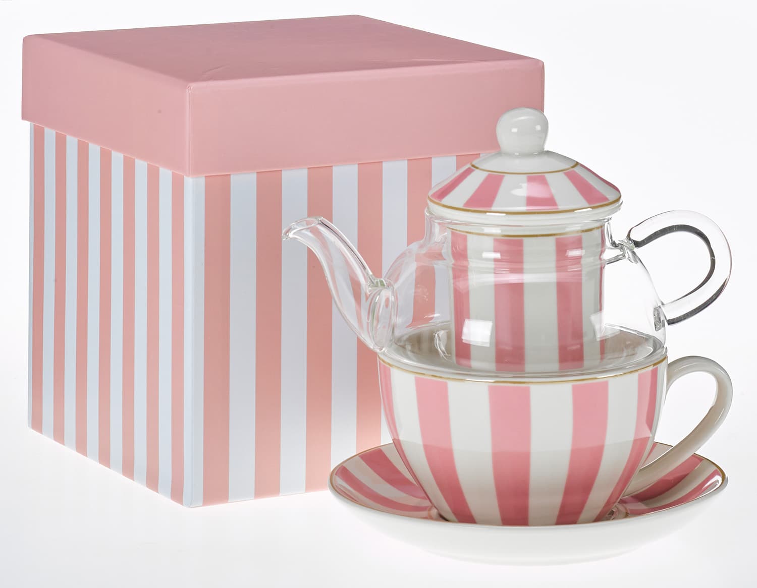 TRENDSHOP Tee-Set Tea for One rosa-weiß gestreift 5-tlg.